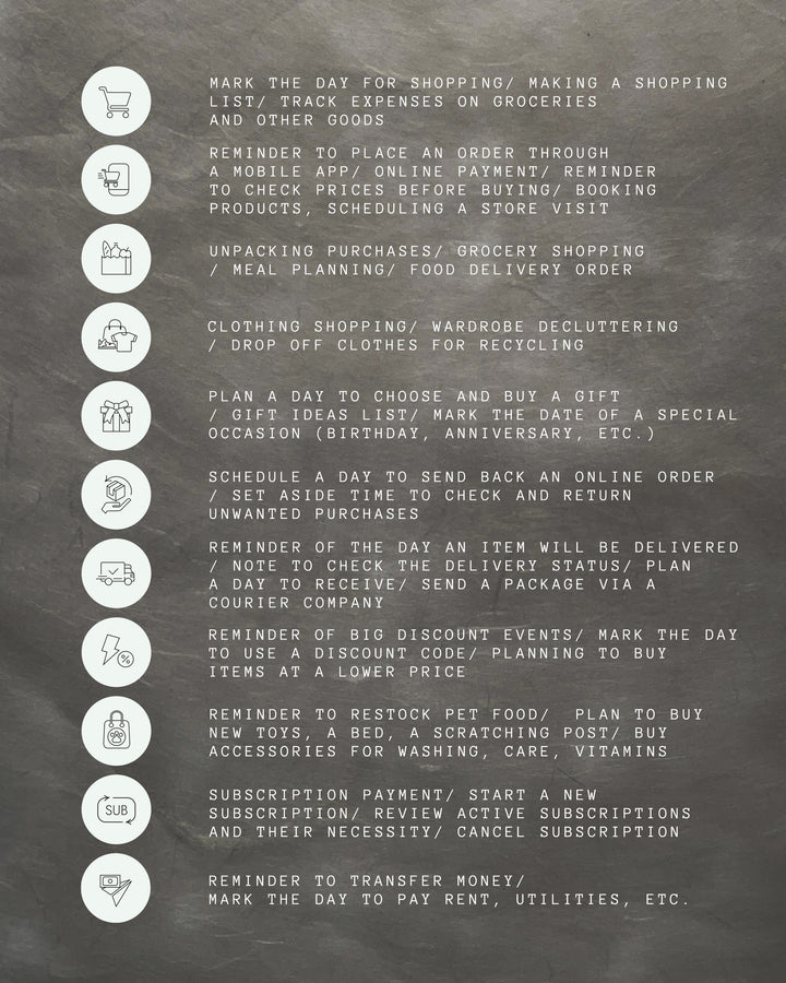 These transparent stickers for shopping and purchase planning help you stay organized and shop efficiently. They serve as visual markers for shopping lists, errands, and budget planning—creating a well-thought-out and stress-free shopping routine. Perfect for planners, notebooks, bullet journals, and household organization. Stay on top of everything!