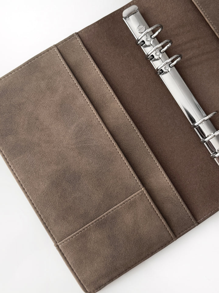 Unser Binder wird aus feinstem veganem Wildleder gefertigt – langlebig und unglaublich angenehm im Griff. Die matte, samtige Oberfläche verleiht Ihrem Planer einen luxuriösen Charakter, den man sehen und fühlen kann.