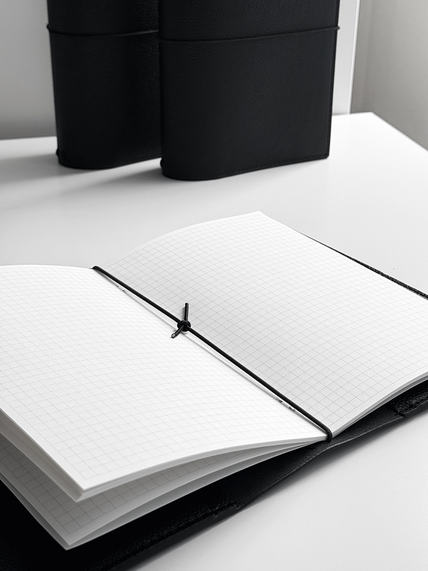 Handgefertigte A5 Einlagen für MyRoadbook – 64 Seiten, kariertes, 100 g Papier.