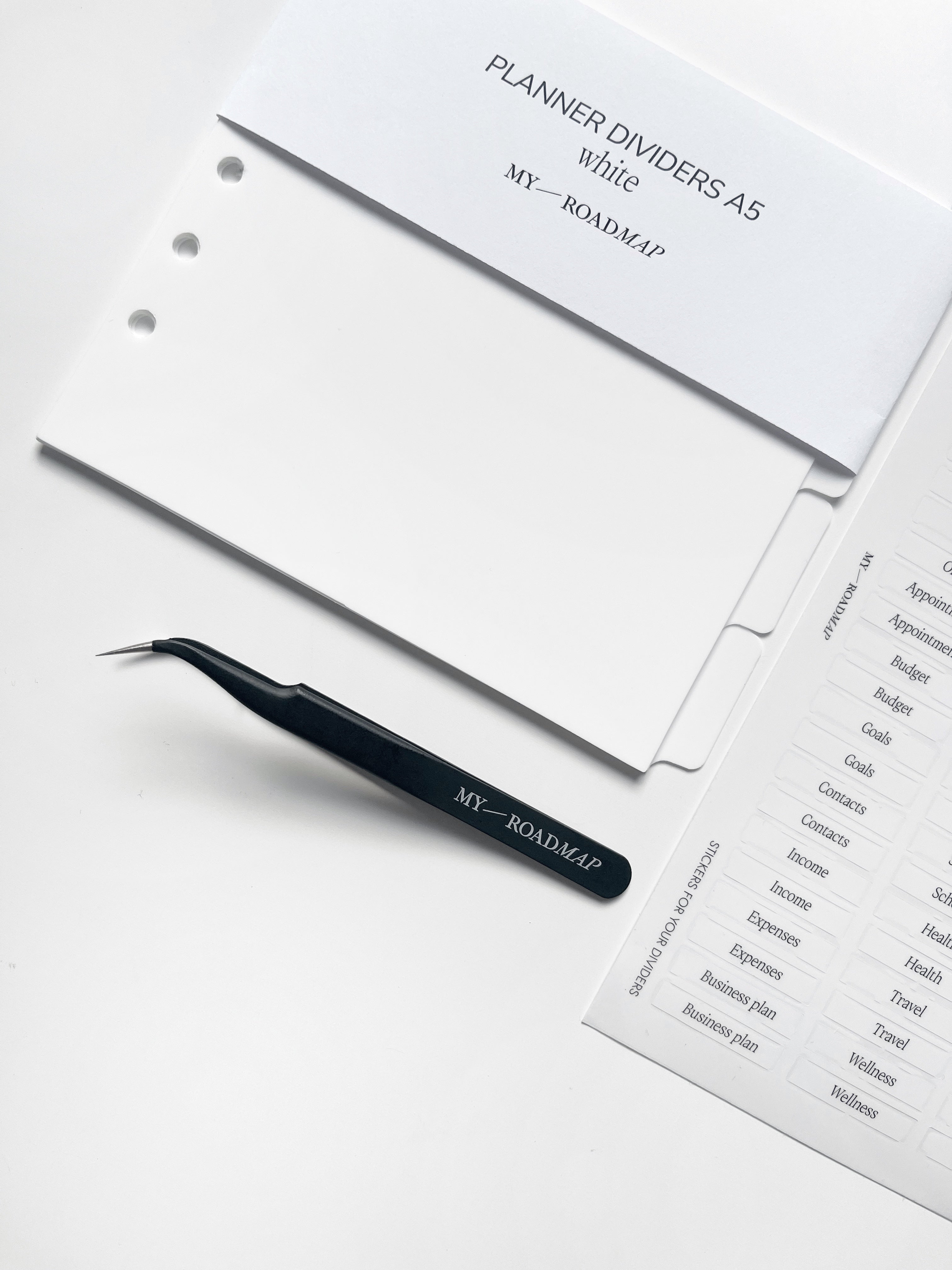 Register A5/Personal weiß+Stickers transparent (schwarz Druck)+Pinzette