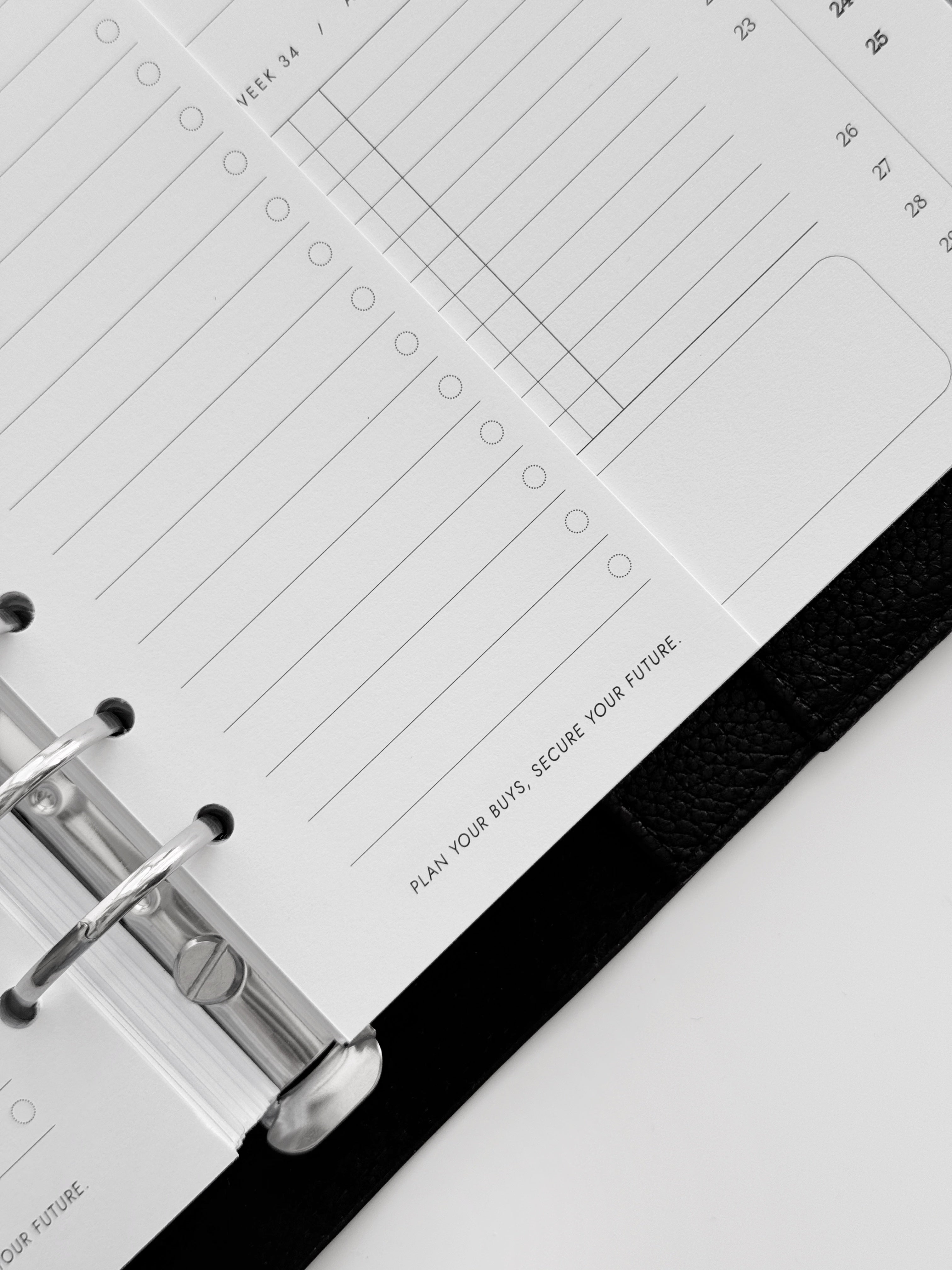 Fügen Sie Ihrem Planer mit unsere schmale Einkaufslisten hinzu. Diese hochwertigen Einlagen sind speziell dafür konzipiert, Ihre Einkaufsnotizen ordentlich und leicht zugänglich zu halten, damit Sie keinen Artikel auf Ihrer Liste vergessen. Perfekt für alle, die ihren Einkauf effizienter gestalten möchten.