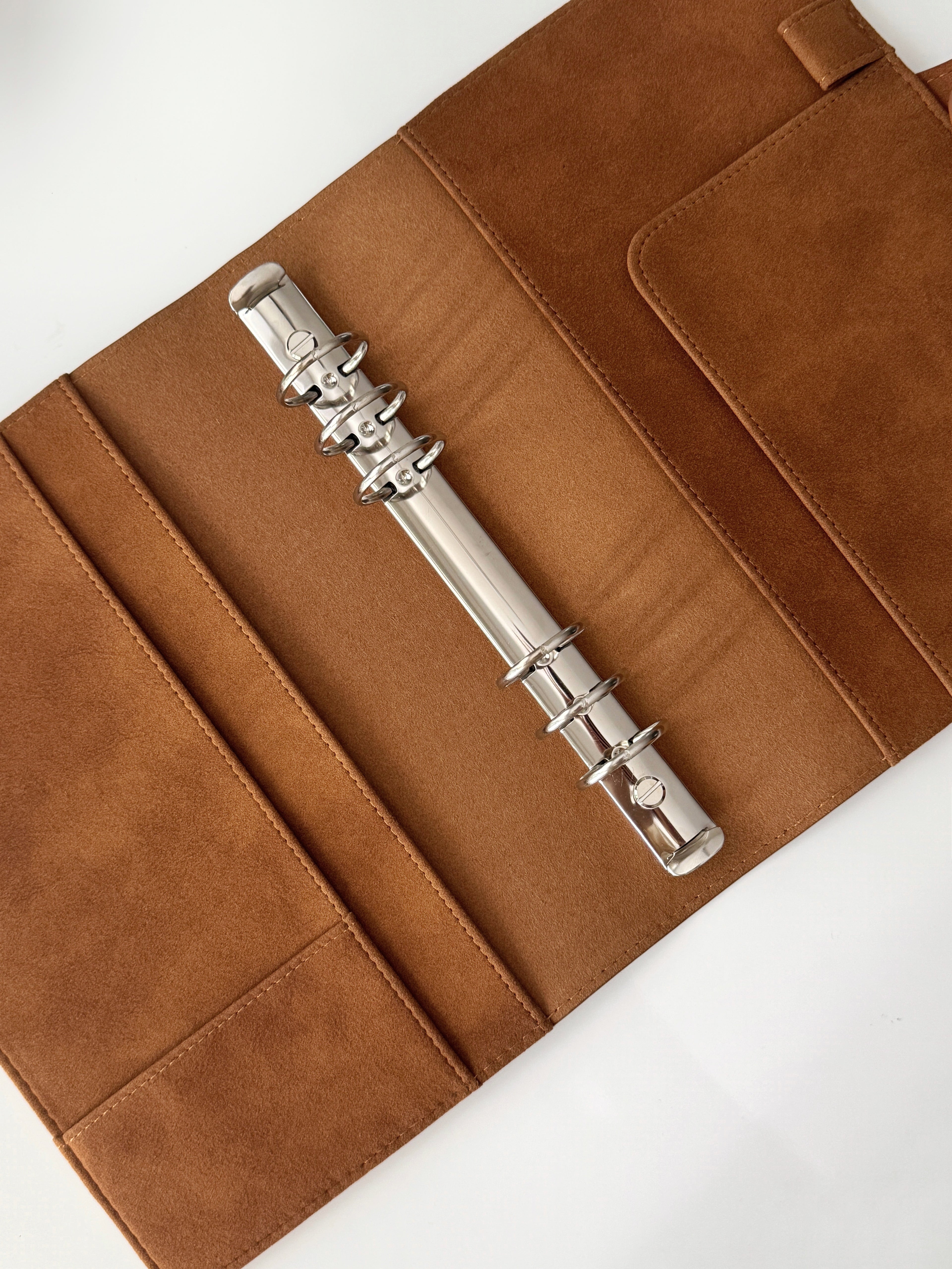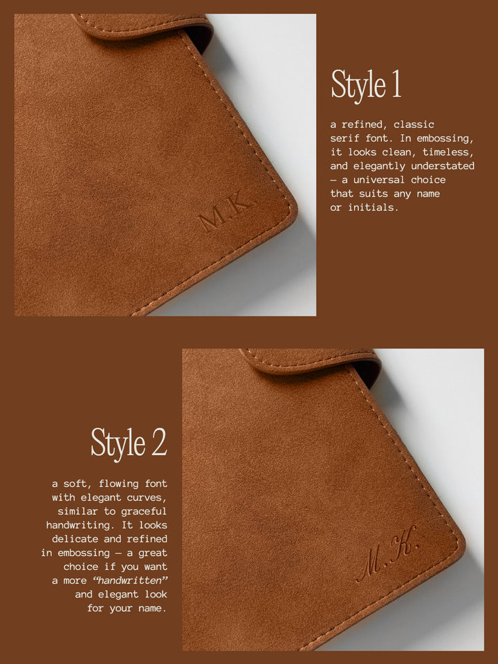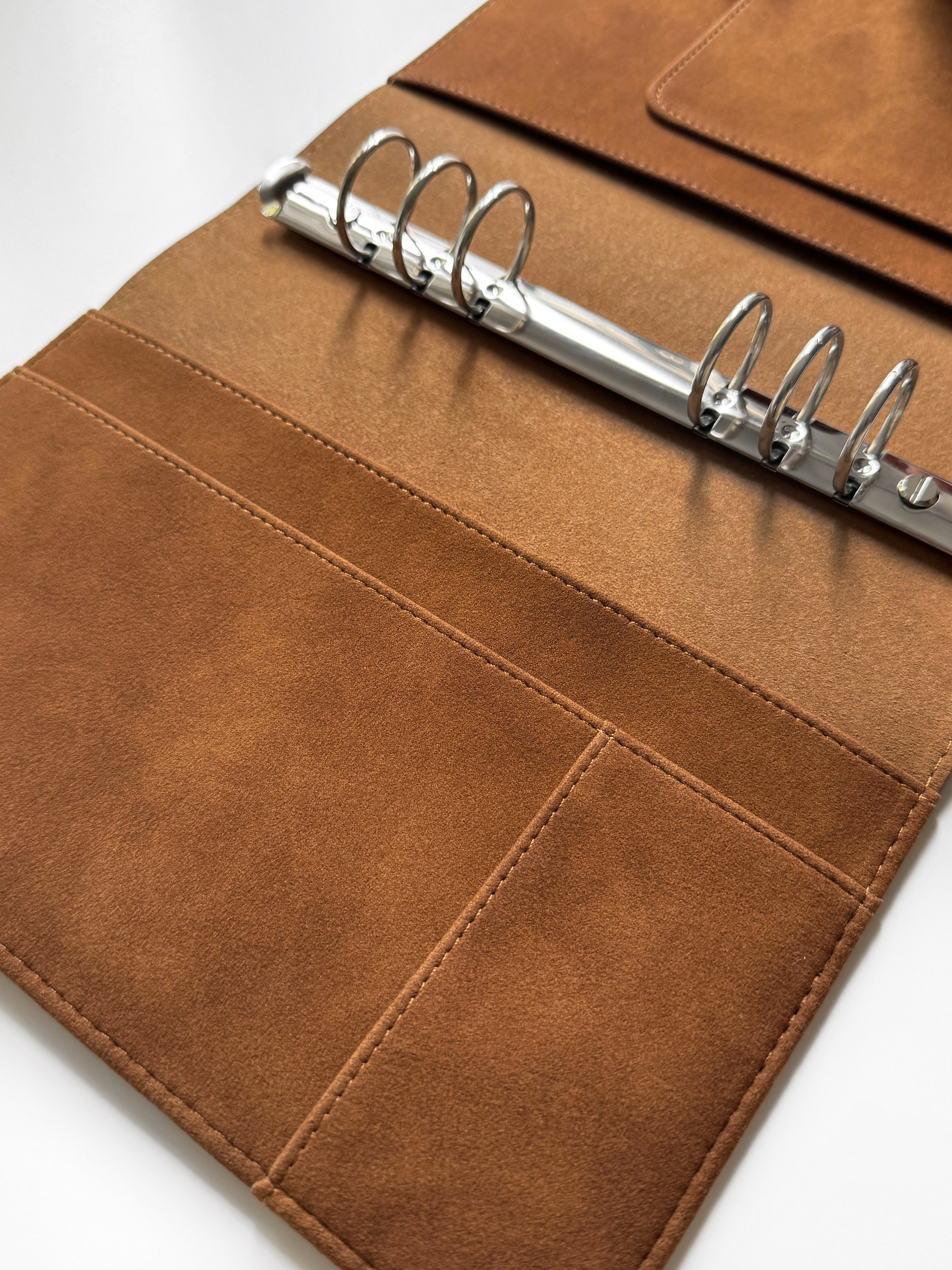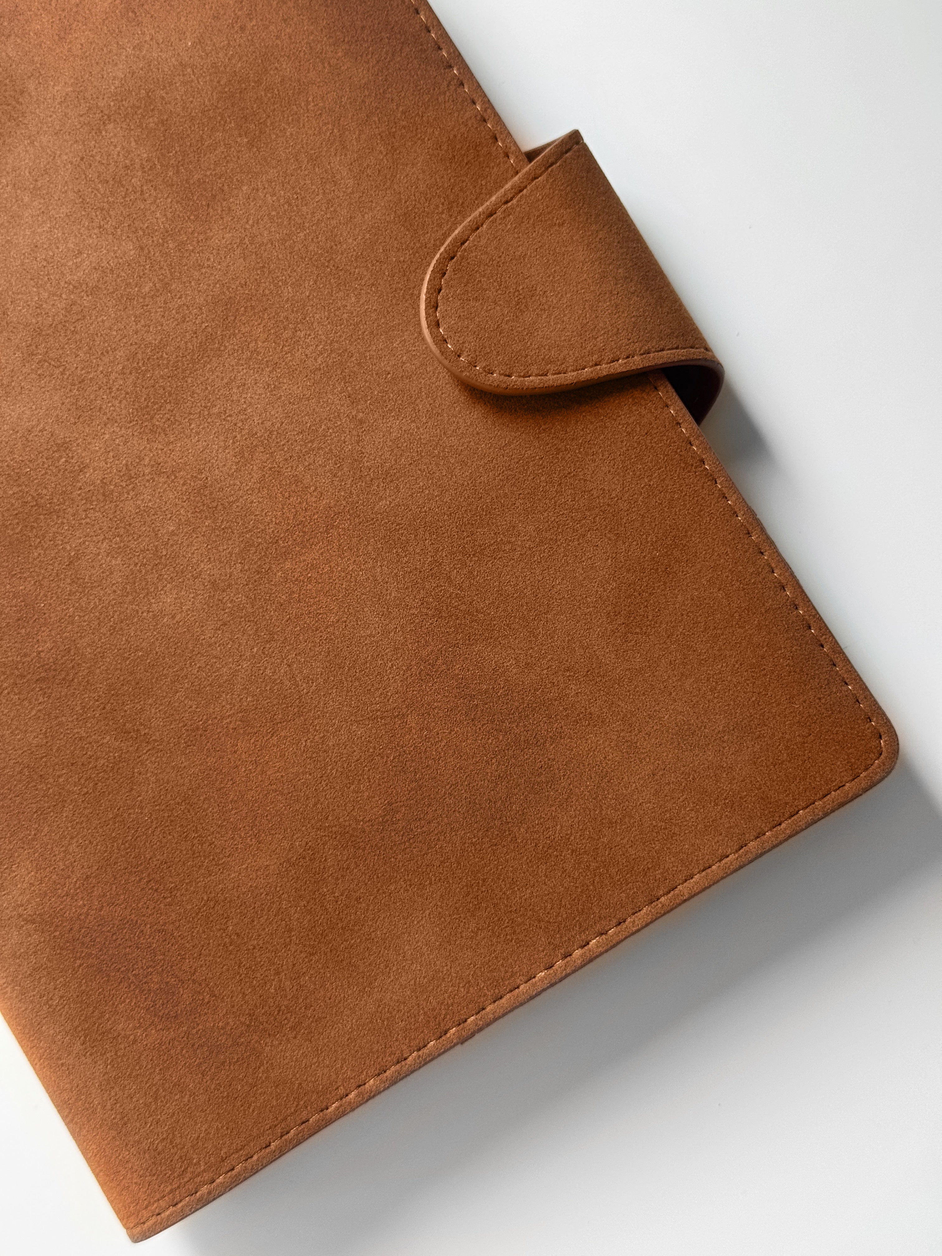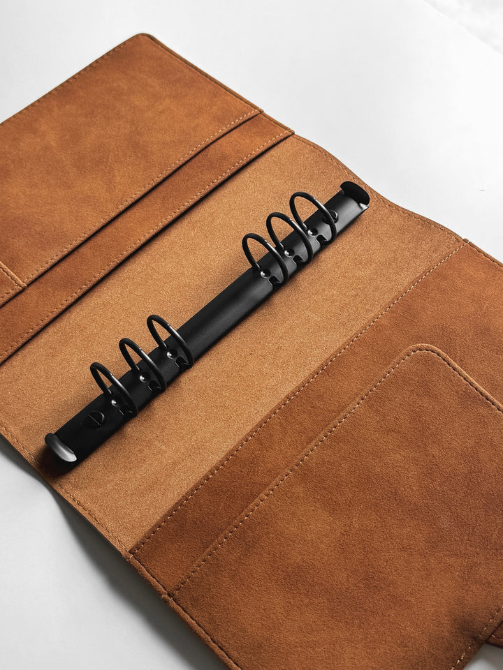Unser Binder wird aus feinstem veganem Wildleder gefertigt – langlebig und unglaublich angenehm im Griff. Die matte, samtige Oberfläche verleiht Ihrem Planer einen luxuriösen Charakter, den man sehen und fühlen kann.