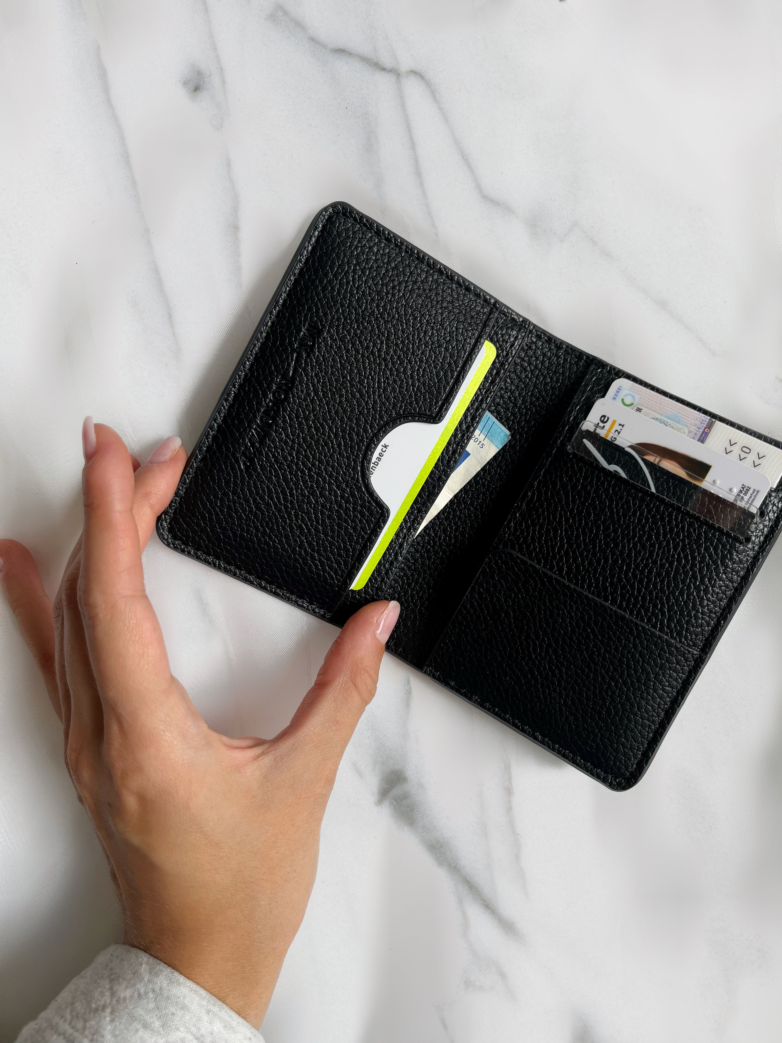 Unser Cardholder mit den Maßen 110x80mm ist die perfekte Kombination aus Stil, Funktionalität und Umweltbewusstsein. Hergestellt aus hochwertigem veganen Leder, bietet dieser Cardholder nicht nur eine elegante Optik, sondern auch Nachhaltigkeit.