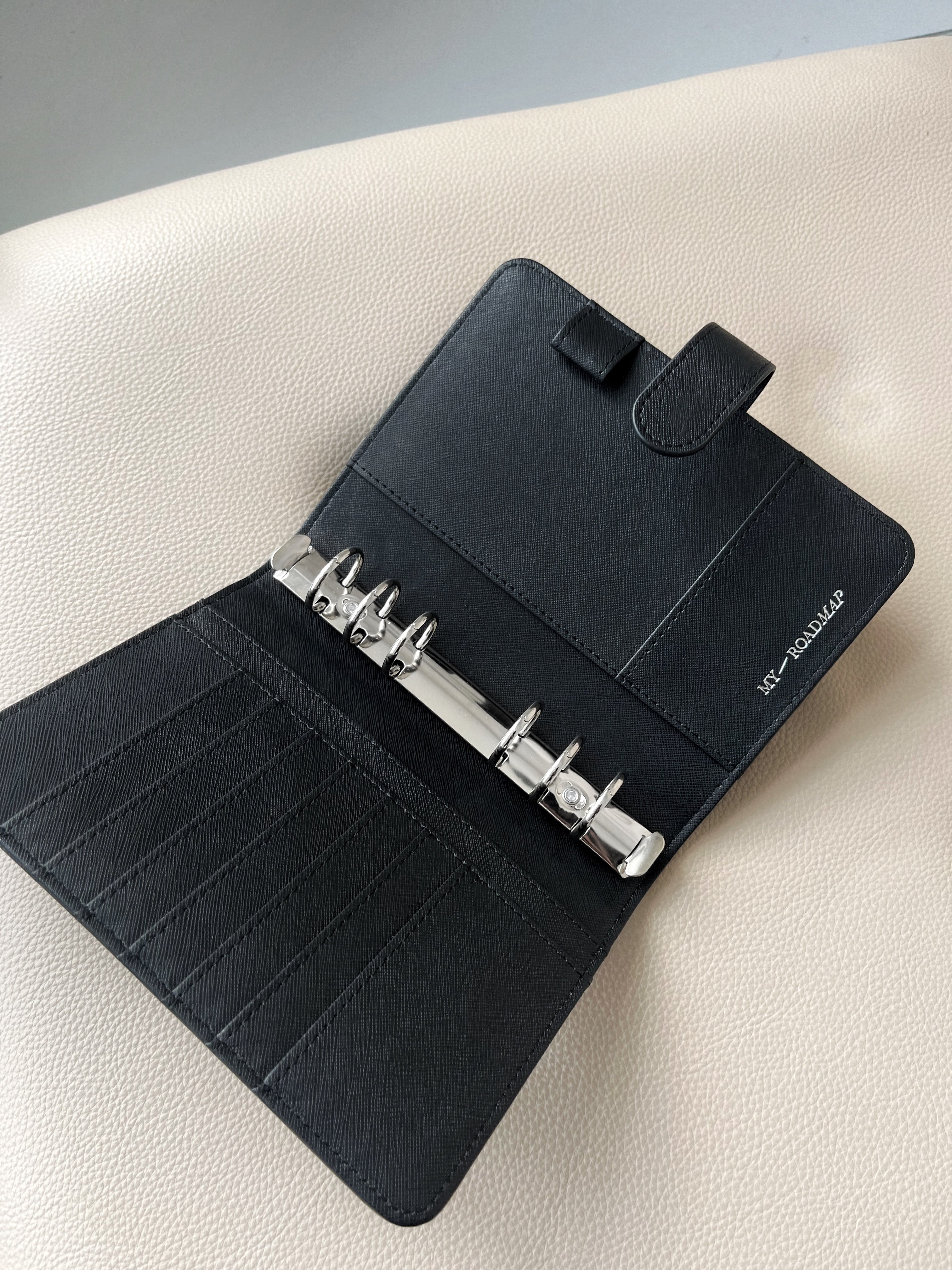 Dieser Binder in der Größe FC-Compact wird Dich mit seinem erfrischenden und exklusiven Design begeistern. Die angenehme Oberflächenstruktur des veganen Leders in der Farbe "Midnight Matte" verleiht ihm eine unverwechselbare Eleganz.