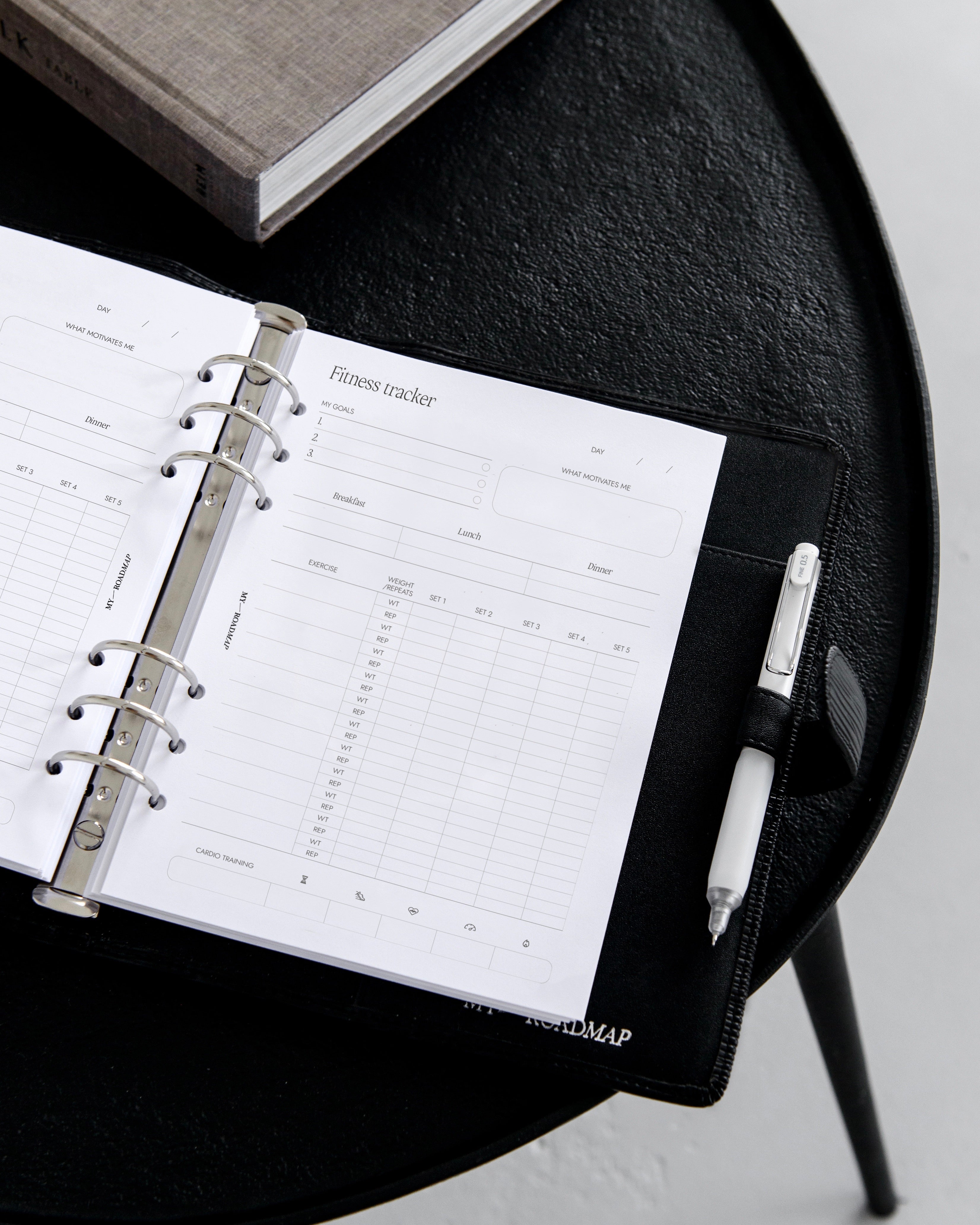 Dieser Fitnessplaner wurde speziell entwickelt, um Ihre sportlichen Aktivitäten und Fitnessziele zu verfolgen und zu erreichen. Er enthält Abschnitte für Ihre Trainingspläne, in denen Sie Ihre Übungen, Sets, Wiederholungen und Fortschritte festhalten können. Sie können Ihre Ziele für jede Trainingseinheit definieren und Ihre Fortschritte im Laufe der Zeit verfolgen.