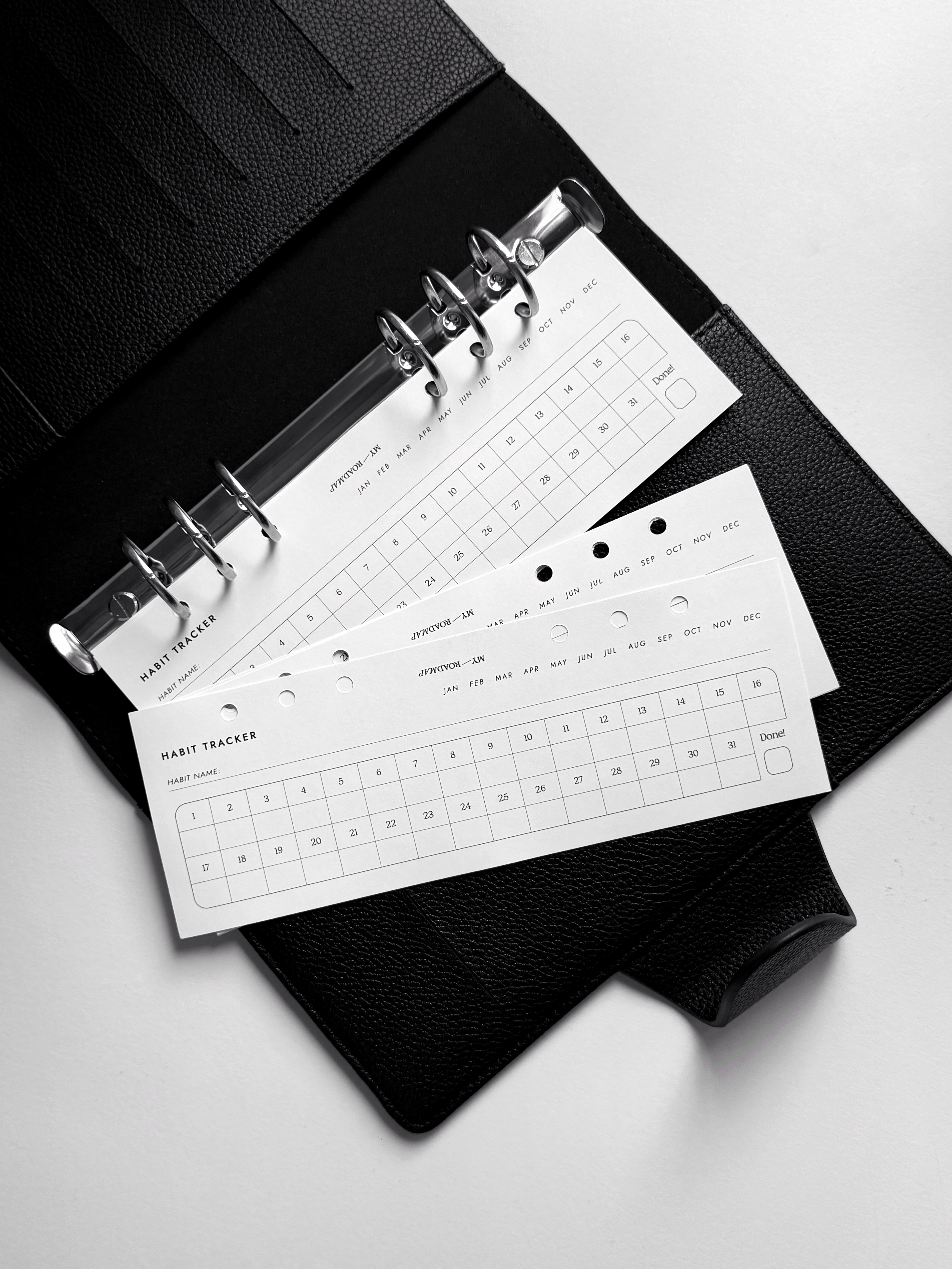 Diese Habit-Tracker-Einlagen (edition 1) sind die perfekte Ergänzung für deinen Planer und helfen dir, deine täglichen Routinen einfach zu verfolgen und zu verwalten. Im halbseitigen Format gestaltet, passen sie nahtlos in jeden Planer, ohne zu viel Platz einzunehmen. Mit einem klaren und einfachen Layout kannst du dich auf deine Gewohnheiten konzentrieren, ohne abgelenkt zu werden. Das undatierte Format ermöglicht es dir, jederzeit mit dem Tracking zu beginnen, sodass du deinen Fortschritt leicht überwachen und langfristig motiviert bleiben kannst. Ideal für alle, die bessere Gewohnheiten entwickeln und organisiert bleiben möchten.