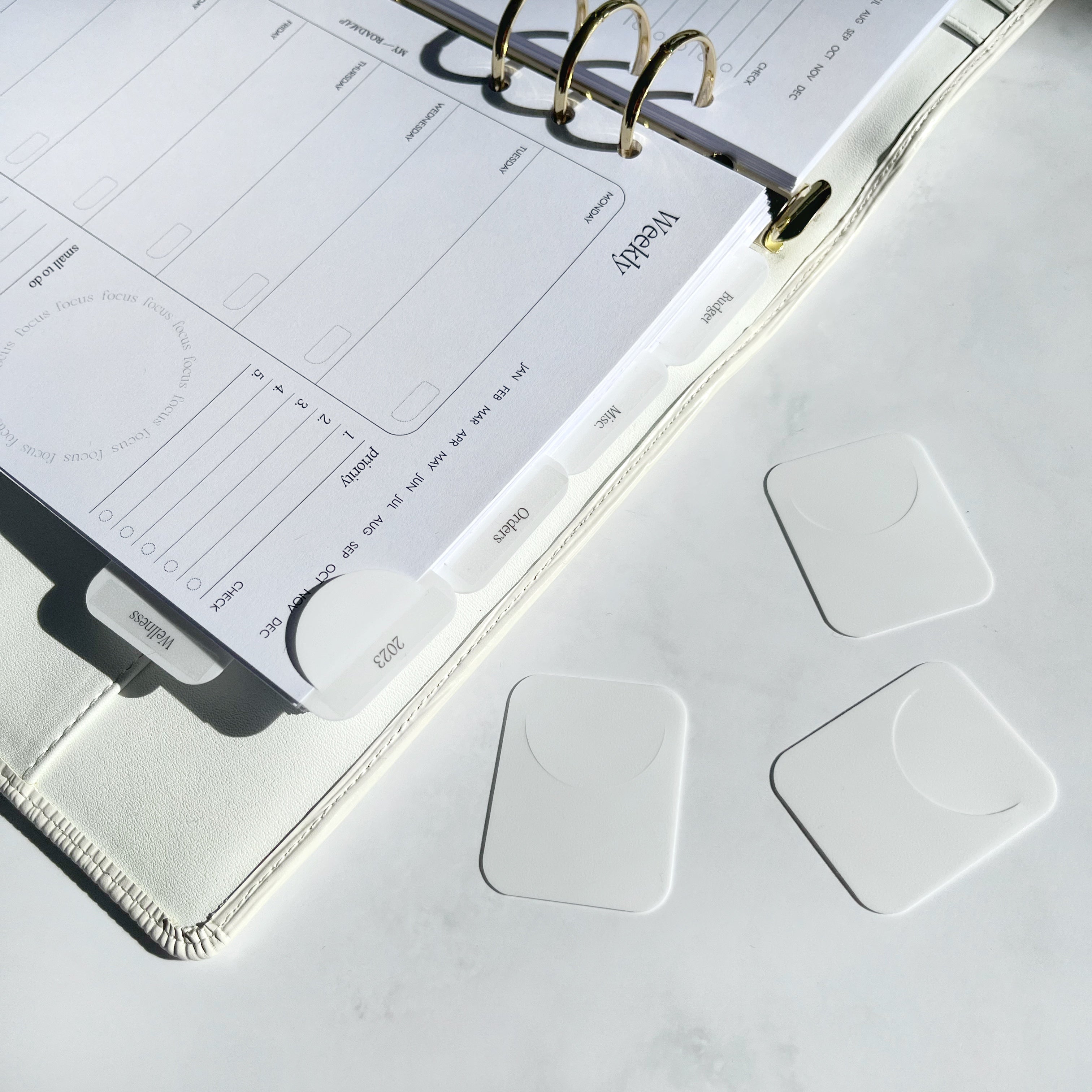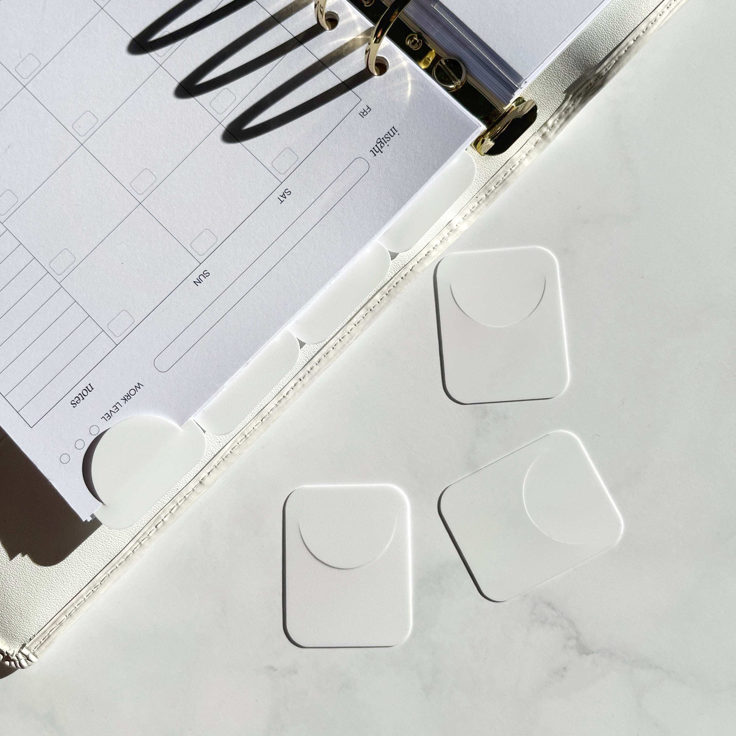 Unsere Lesezeichen aus Kunststoff sind die perfekte Ergänzung für Ihren Planer, Organizer Journaling, Bücher und vieles mehr. Mit ihrem schlanken Design und der weißen Farbe passen sie zu jedem Stil und fügen sich nahtlos in Ihre tägliche Routine ein.
