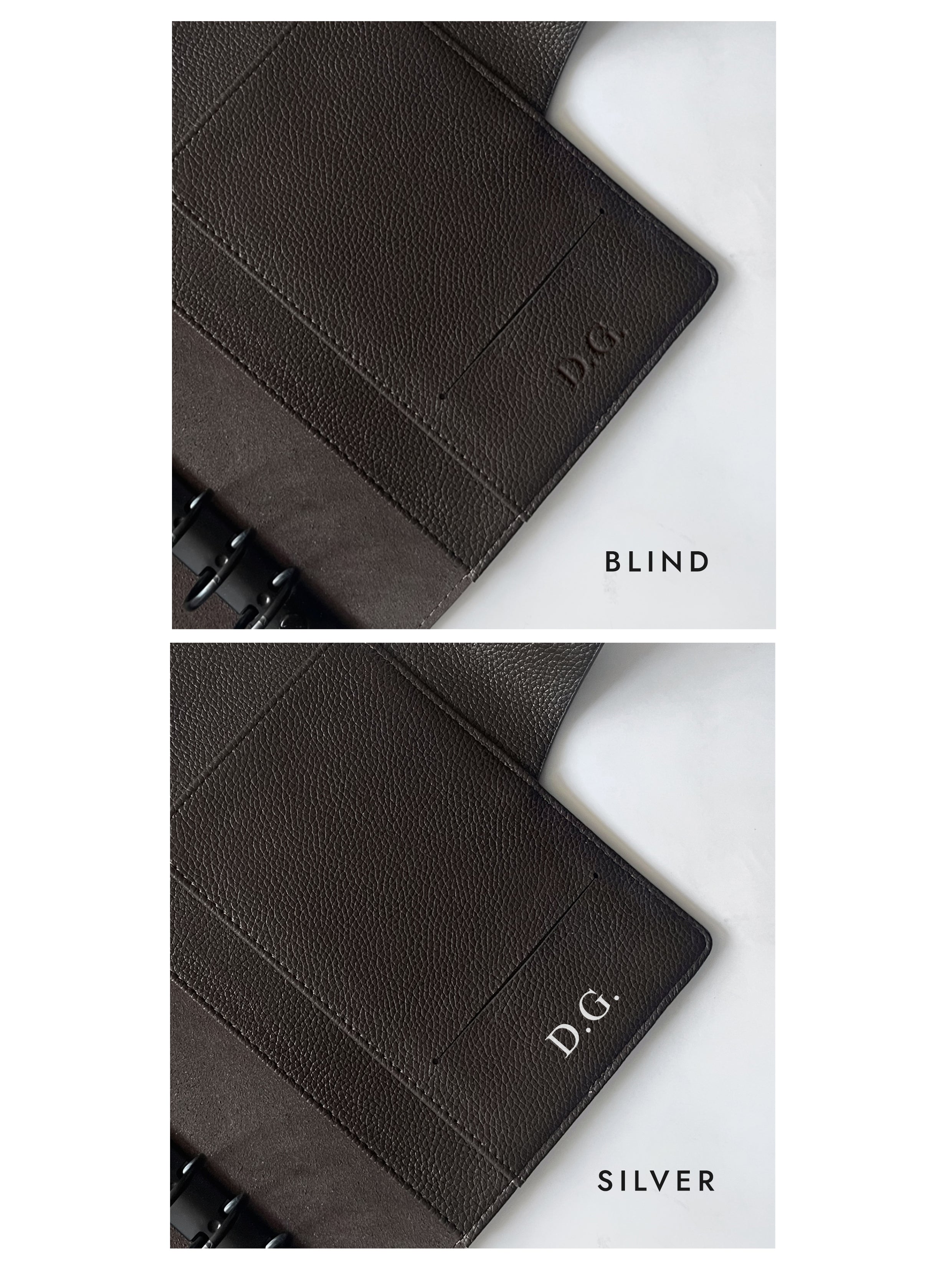 Individuelle Gestaltung: Mit unserer speziellen Option zur Hinzufügung von Initialen oder einem Wort mit maximal 7 Buchstaben verleihst du deinem Binder eine persönliche Note - wir setzen es für dich als Blind oder Silberprägung perfekt um.