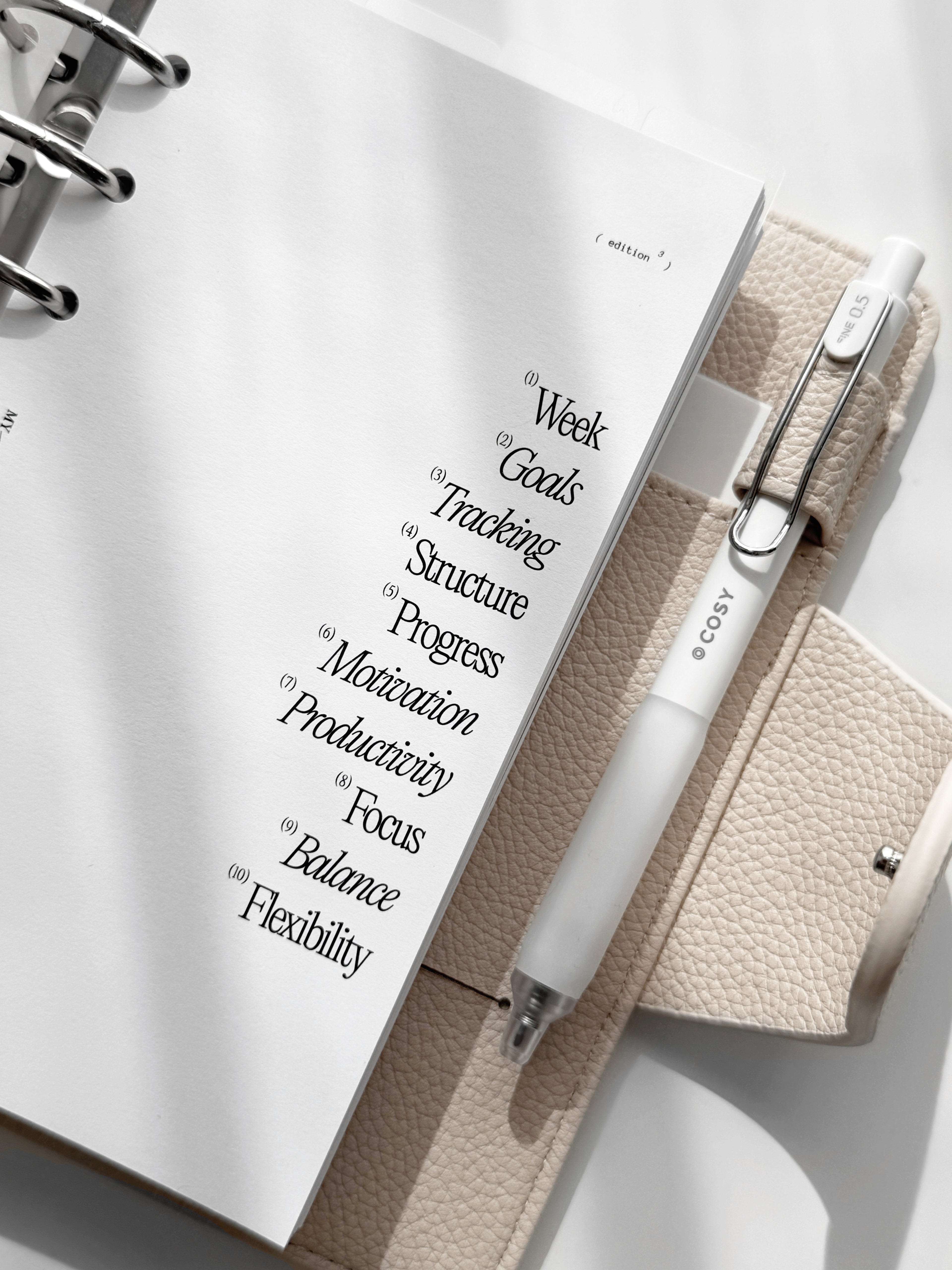 Mit Schwarz oder Silberringen: Sie haben die Wahl zwischen schwarzen oder silbernen Ringen. Diese Option ist perfekt für diejenigen, die Wert auf strukturierte Planung, exklusive Optik und Organisation legen und dabei dennoch elegant auftreten möchten. (Ringabstände: 19-19-51-19-19mm, Ø30mm)