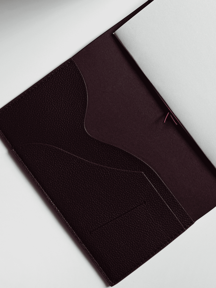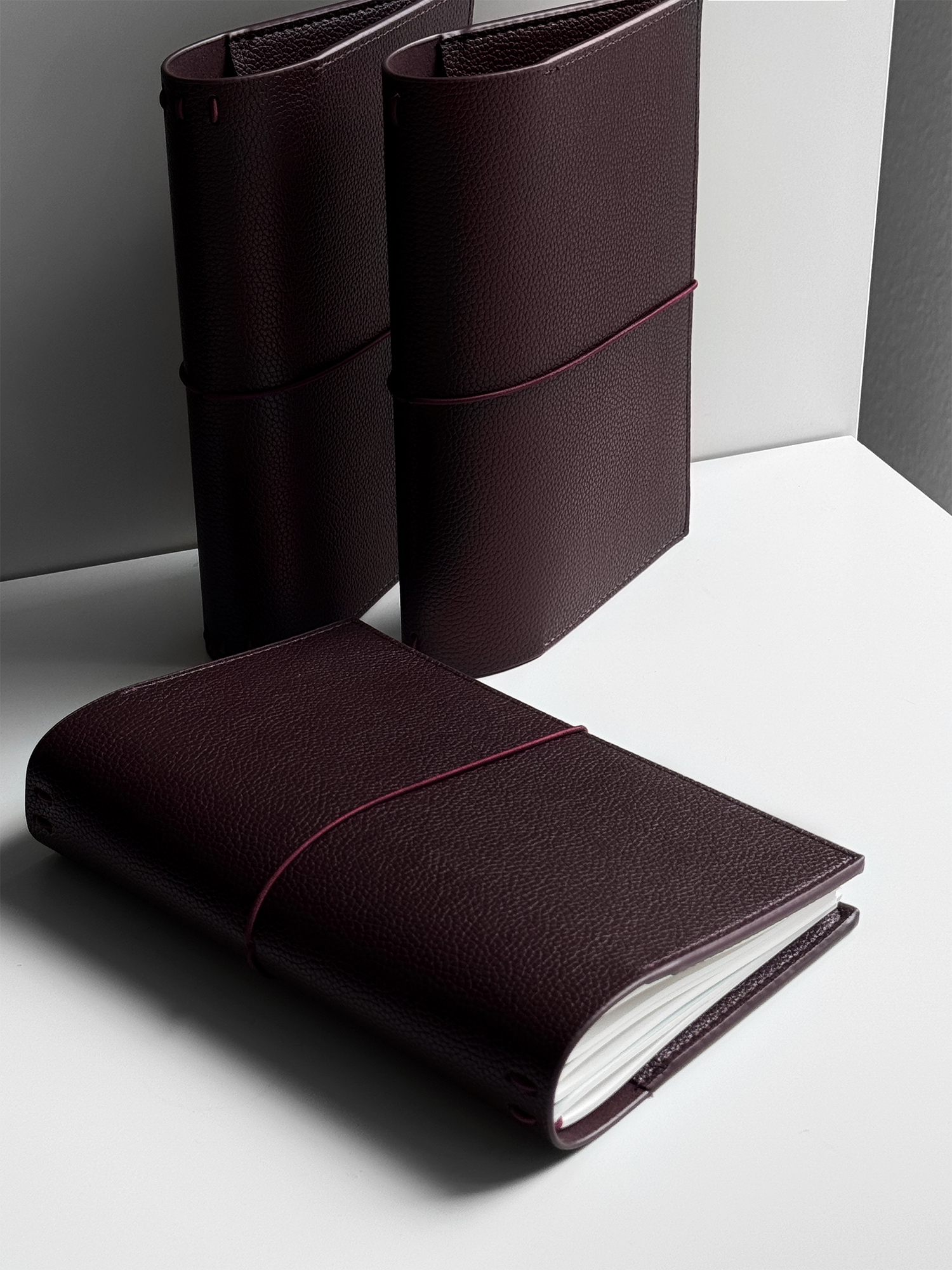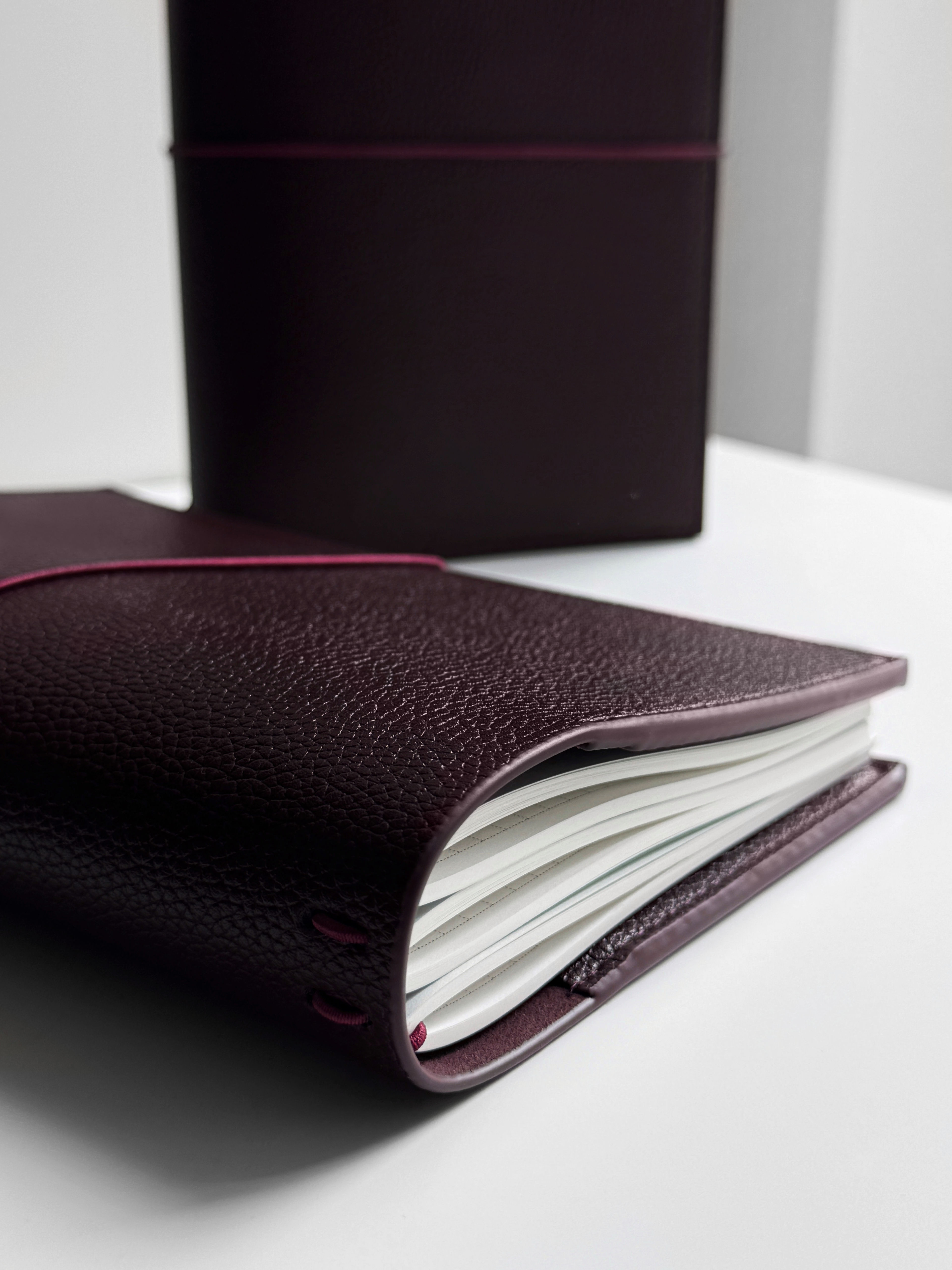 Erstelle dein persönliches Reise- oder Lebensjournal mit dem MyRoadbook Cover A5 „Merlot“, gefertigt aus hochwertigem, veganem Leder mit einer eleganten Litchi-/Pebbled-Oberflächenstruktur.