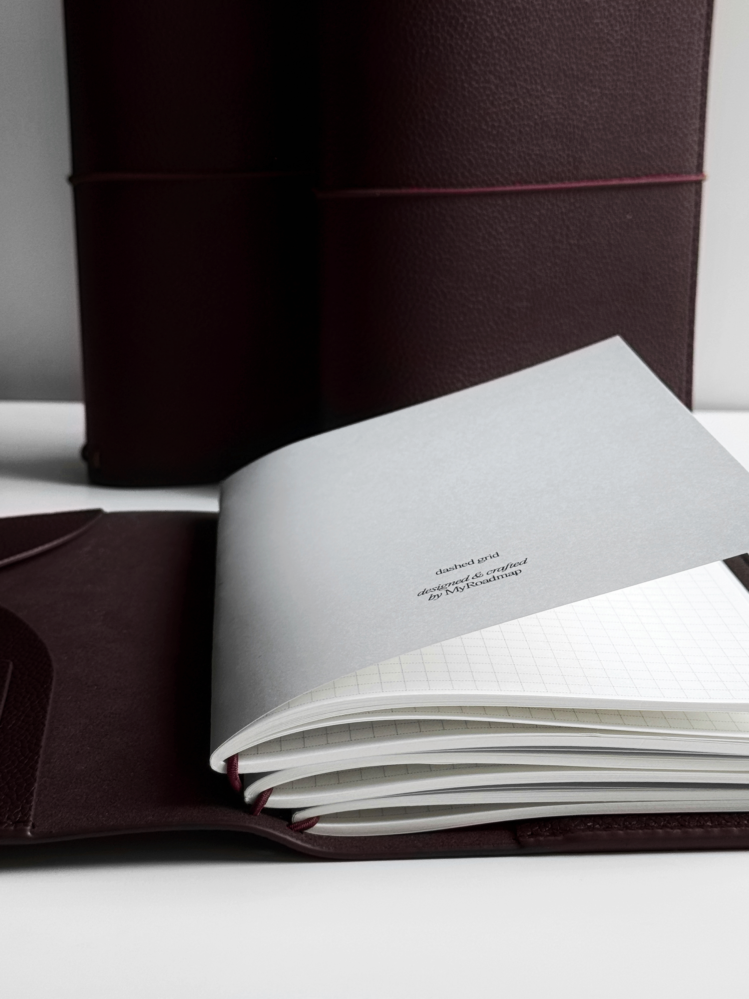 Personalisiertes MyRoadbook Cover A5 | Leder-Notizbuch Merlot | Planer & Journal