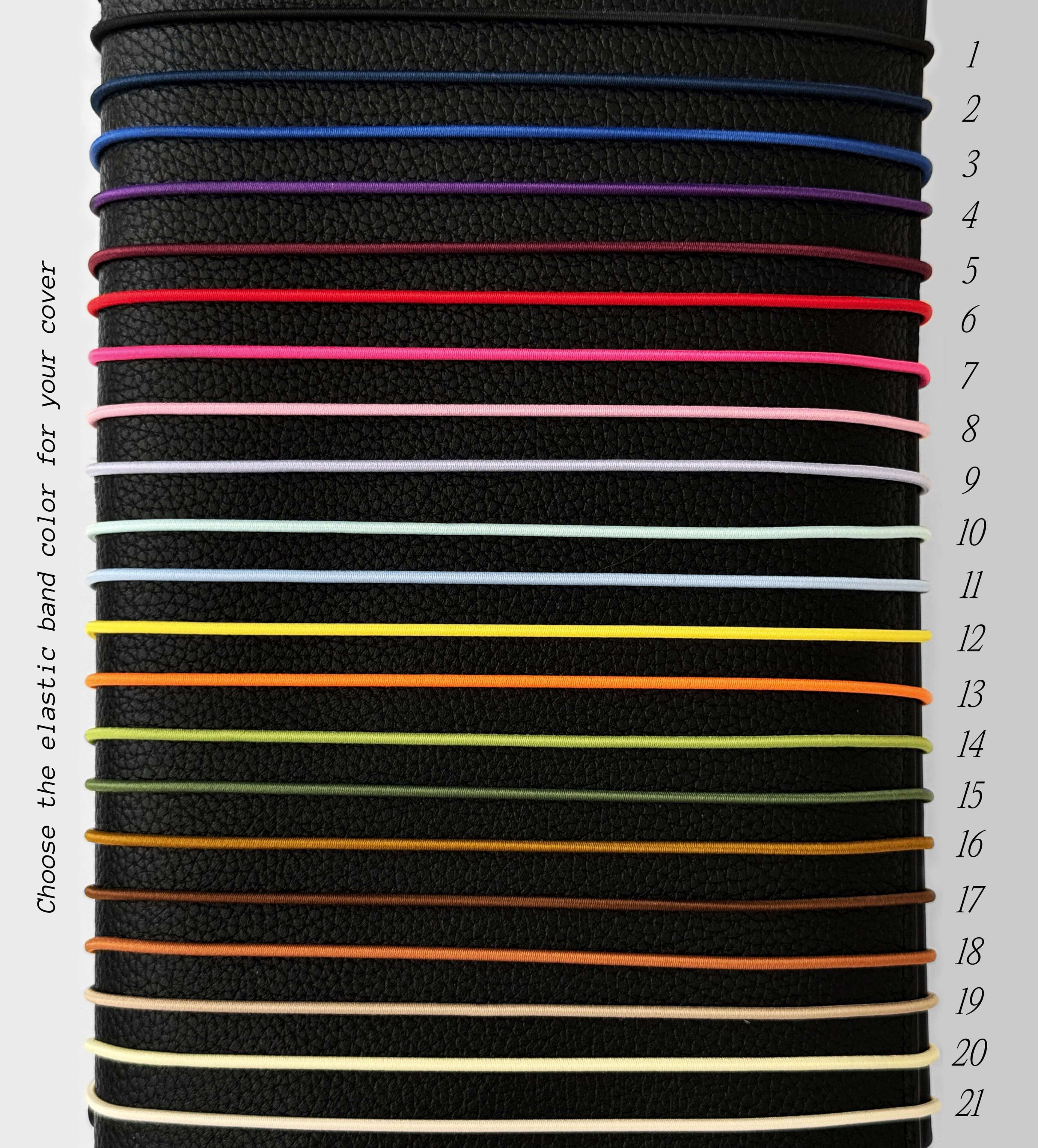 • Auswahl zwischen 21 Gummibandfarben zur individuellen Gestaltung des Covers (siehe Bildergalerie)