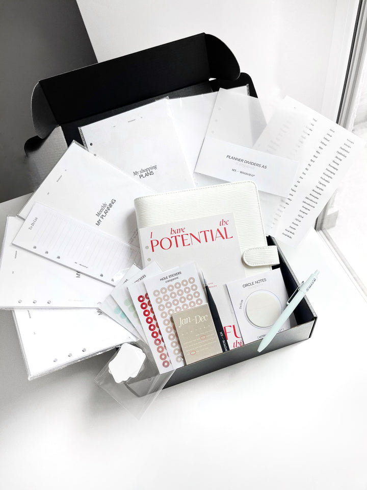 Unser umfangreiches Ringplaner-Set enthält alles, was Sie benötigen, um erfolgreich zu planen und organisiert zu bleiben. Mit diesem Set haben Sie alle notwendigen Werkzeuge zur Hand, um Ihre Termine, Aufgaben und Notizen effizient zu verwalten.