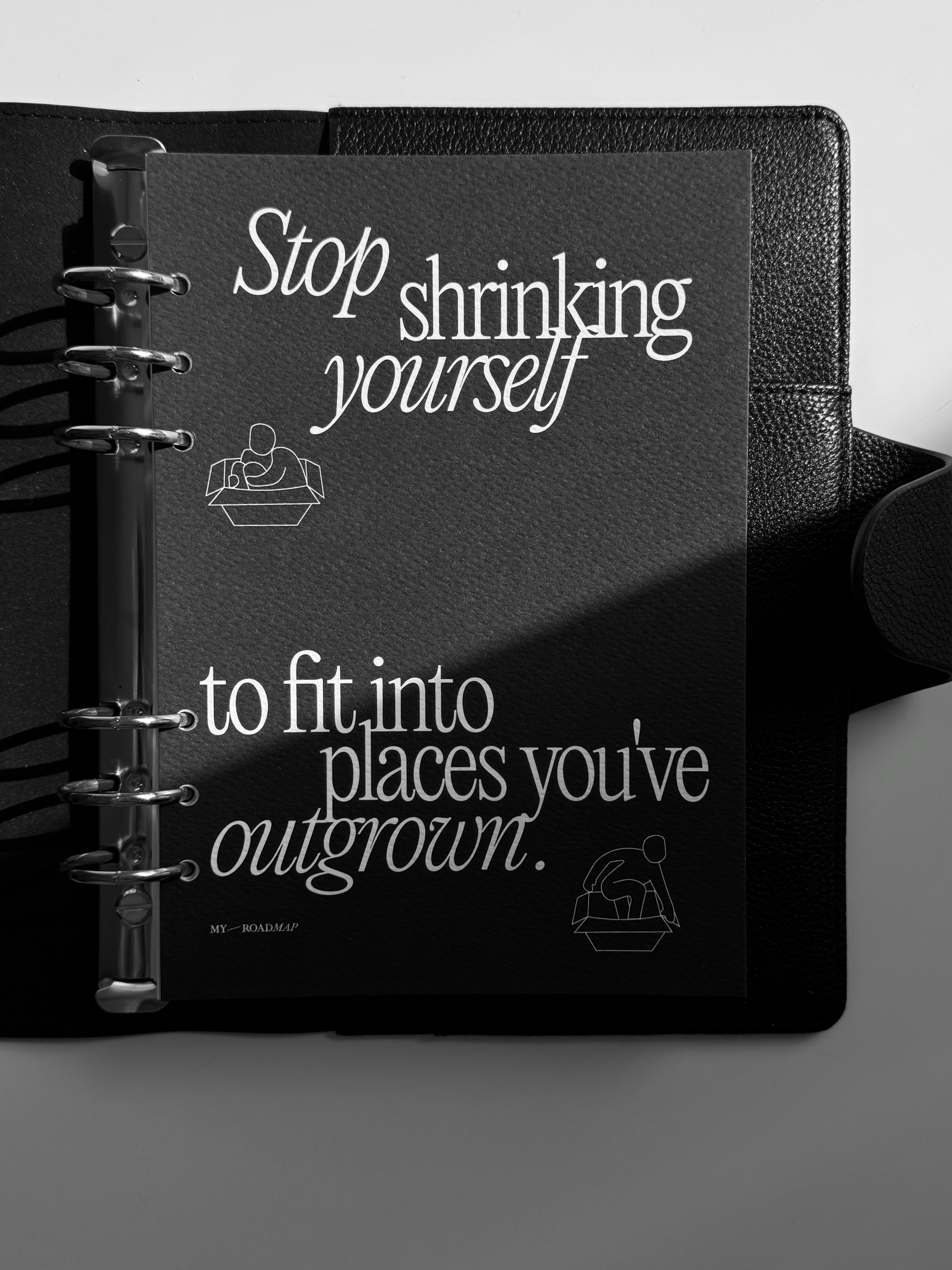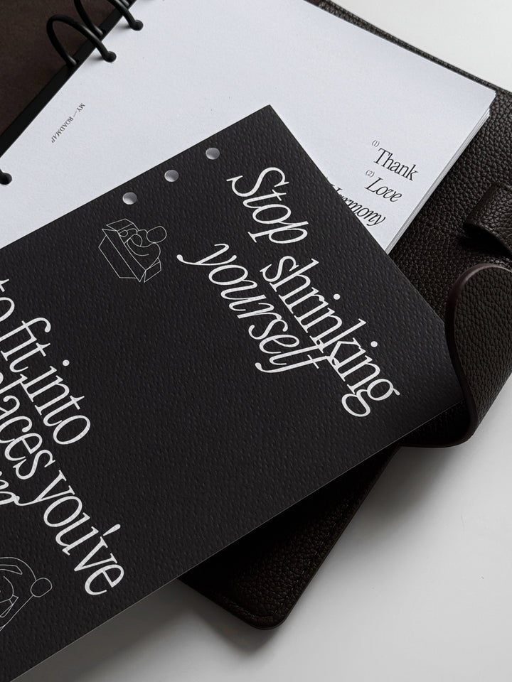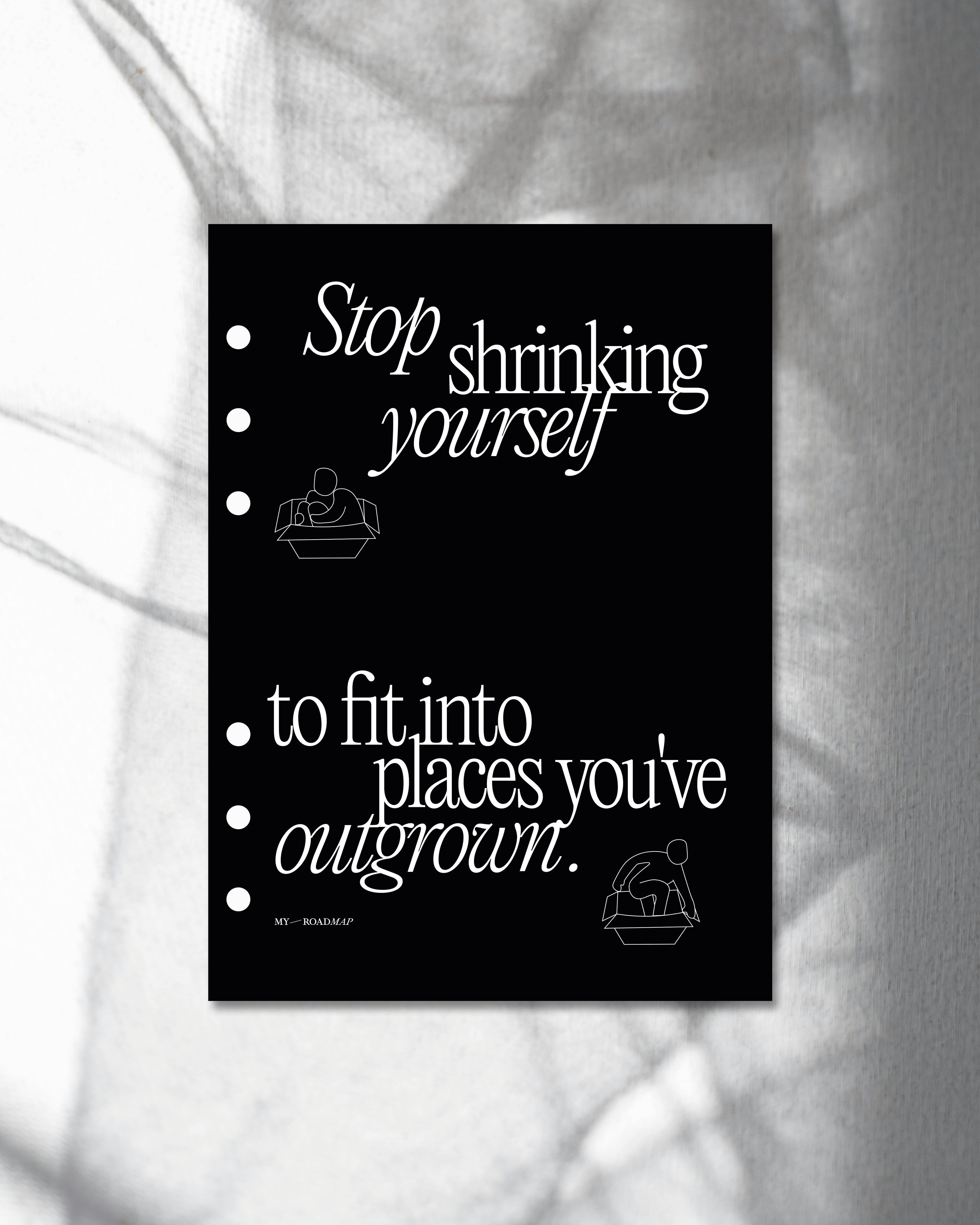 Stop shrinking yourself to fit into places you've outgrown – Eine kraftvolle Erinnerung daran, Wachstum, Veränderung und dein wahres Potenzial anzunehmen.