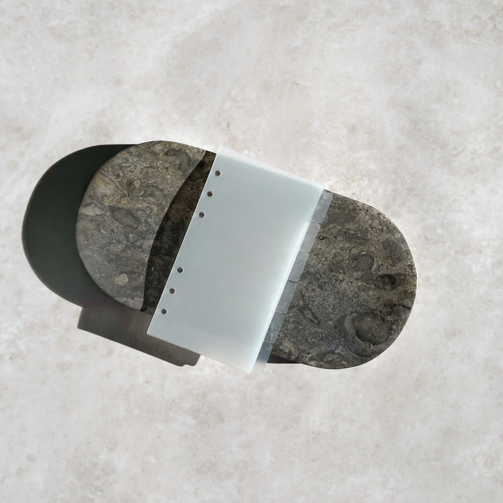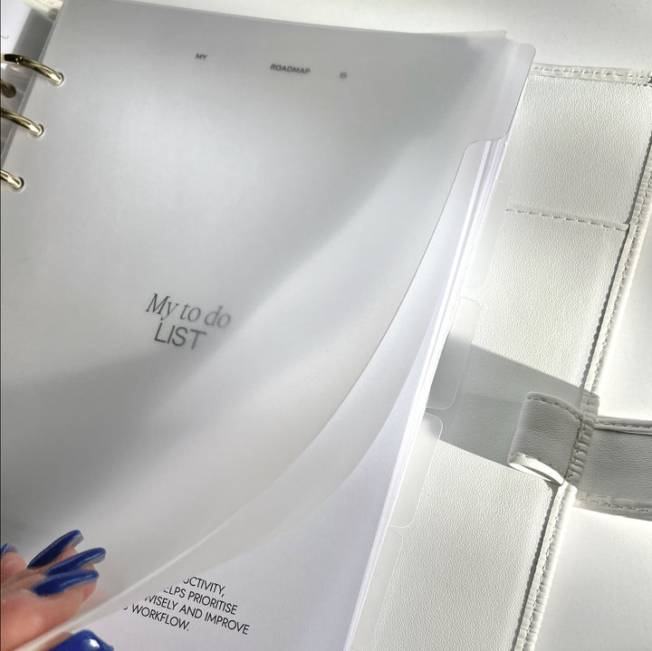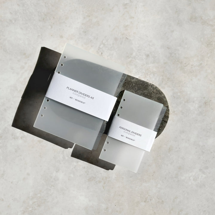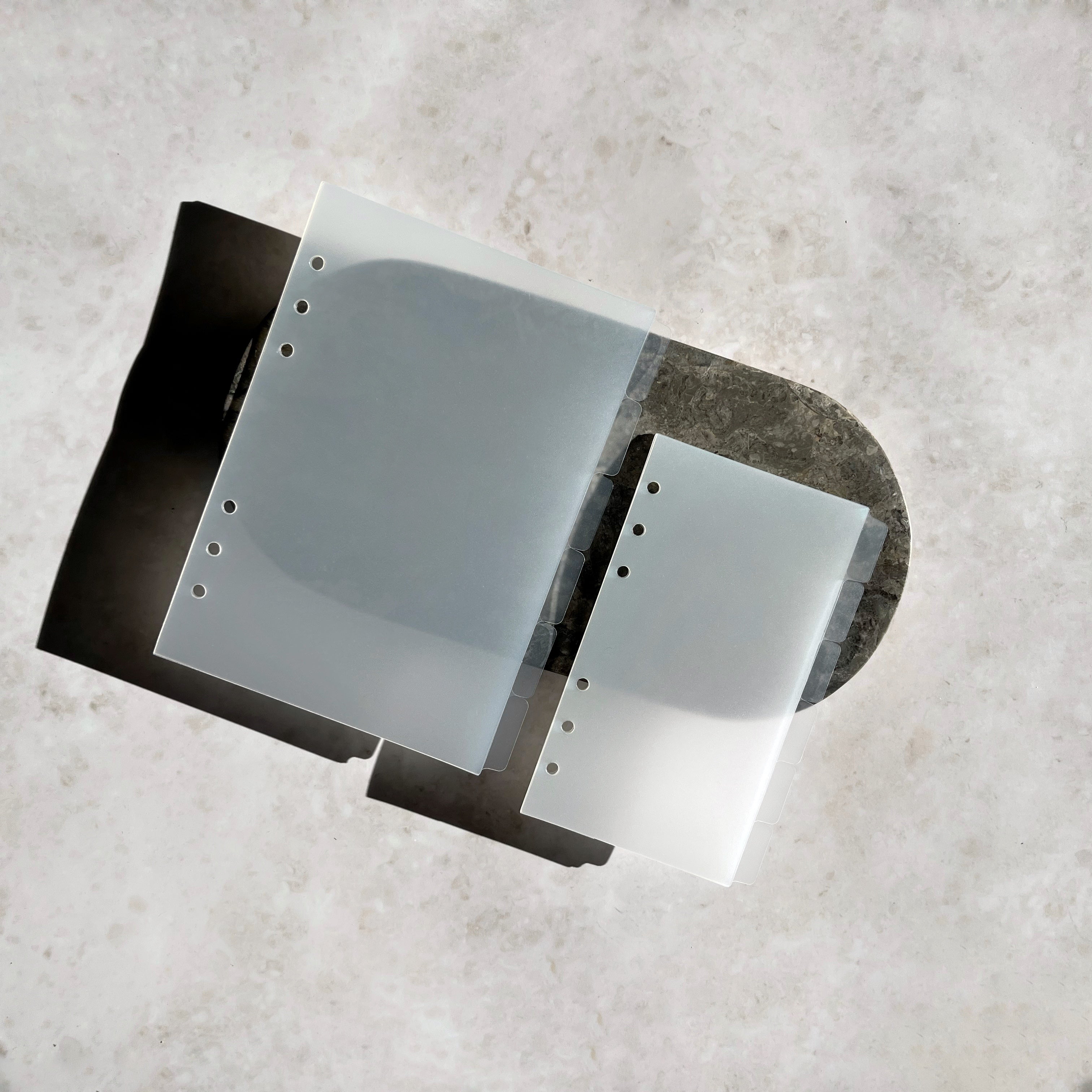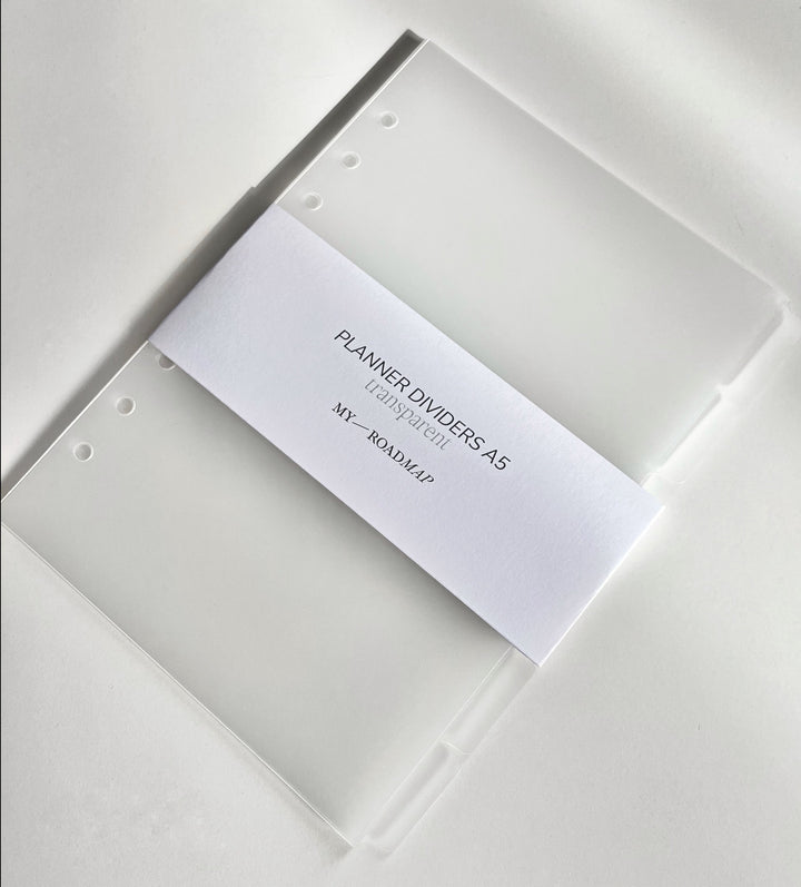 Dieser Trennblätter transparent/frosted im A5 und Personal Format bringen schick und unauffällig Ordnung in deinen Planer! Kombiniere ihn mit Schriftzügen oder Bilder, die du darunter heftest, so kannst du immer wieder Erneuerungen in deinen Ringplaner bringen.