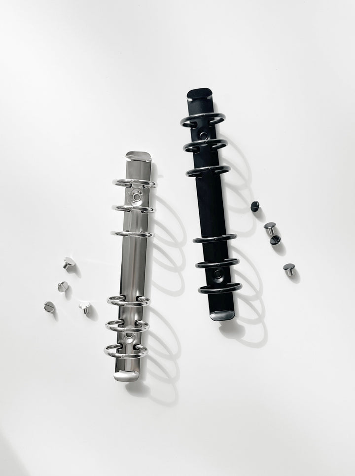 Wir freuen uns, Ihnen unsere hochwertige 6-Ring-Mechanik inkl. Schrauben, in drei Farben (Silber, Gold und Mattschwarz) für Ihren Ringplaner vorstellen zu dürfen. Diese Mechanik besteht aus erstklassigem Material und wurde durch einen Galvanisierungsprozess veredelt, um sie besonders langlebig und robust zu machen.
