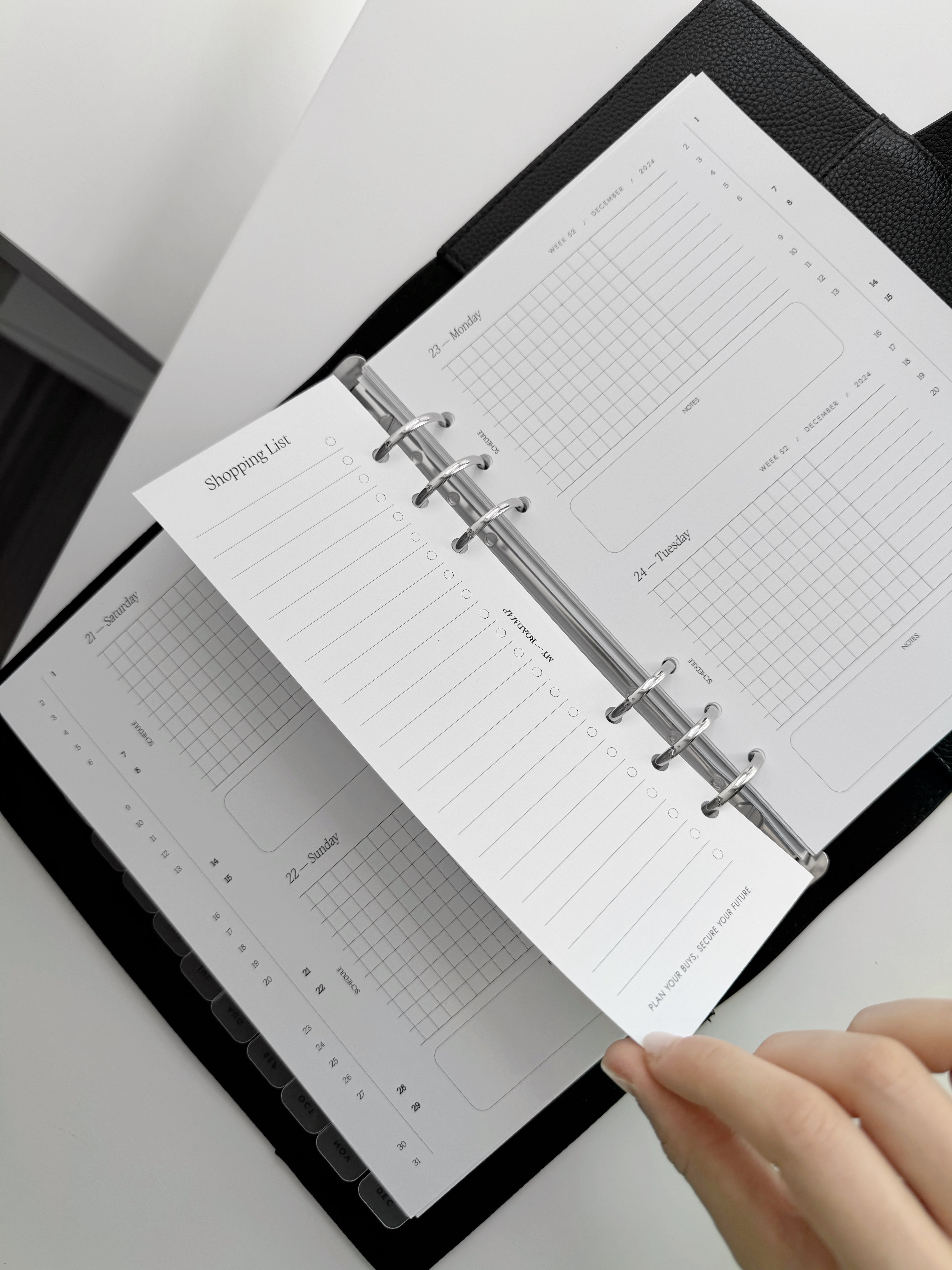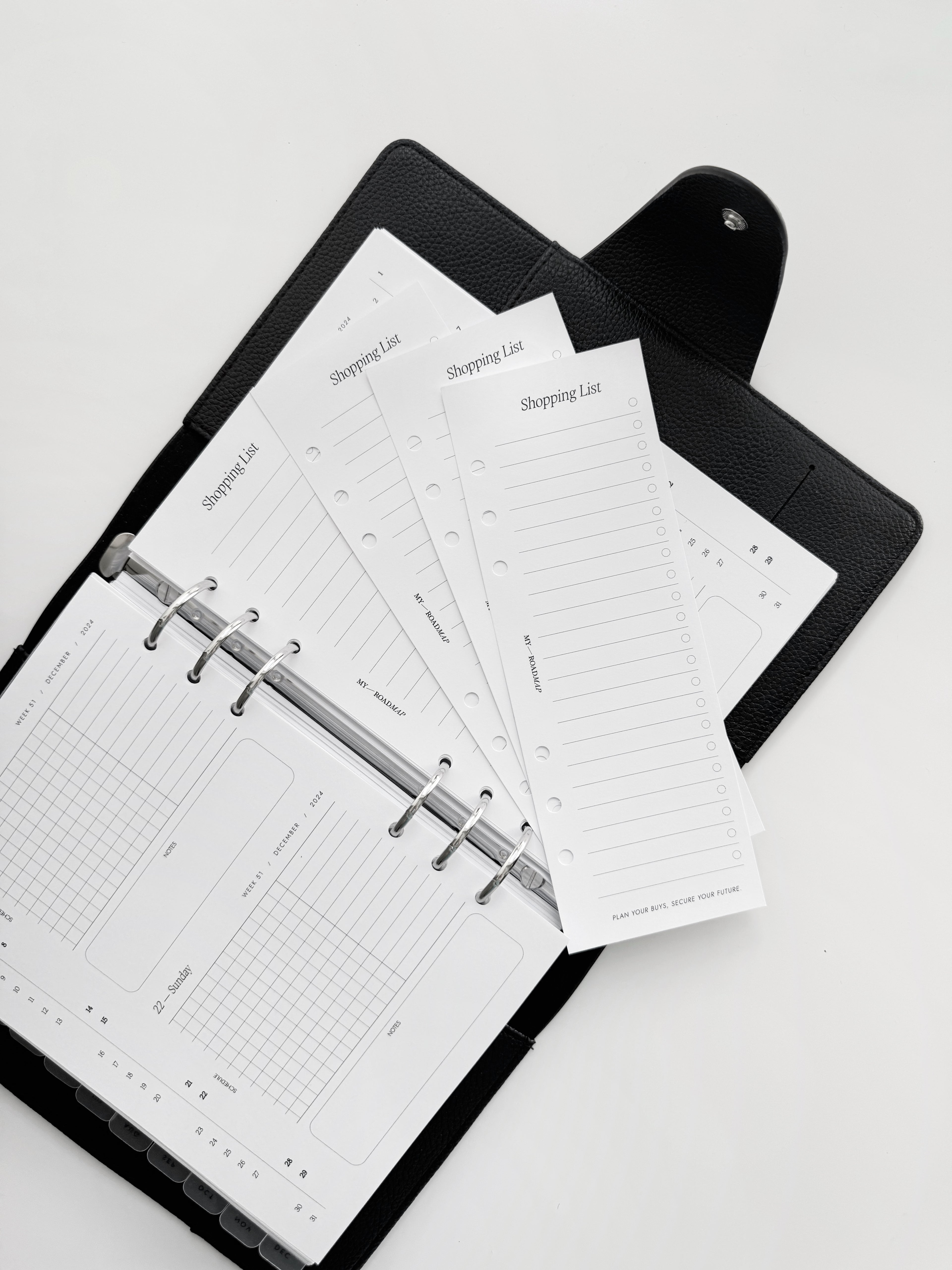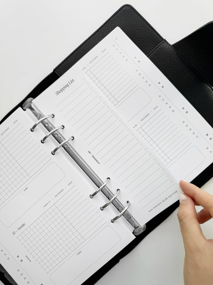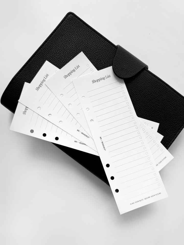 Fügen Sie Ihrem Planer mit unsere schmale Einkaufslisten hinzu. Diese hochwertigen Einlagen sind speziell dafür konzipiert, Ihre Einkaufsnotizen ordentlich und leicht zugänglich zu halten, damit Sie keinen Artikel auf Ihrer Liste vergessen. Perfekt für alle, die ihren Einkauf effizienter gestalten möchten.