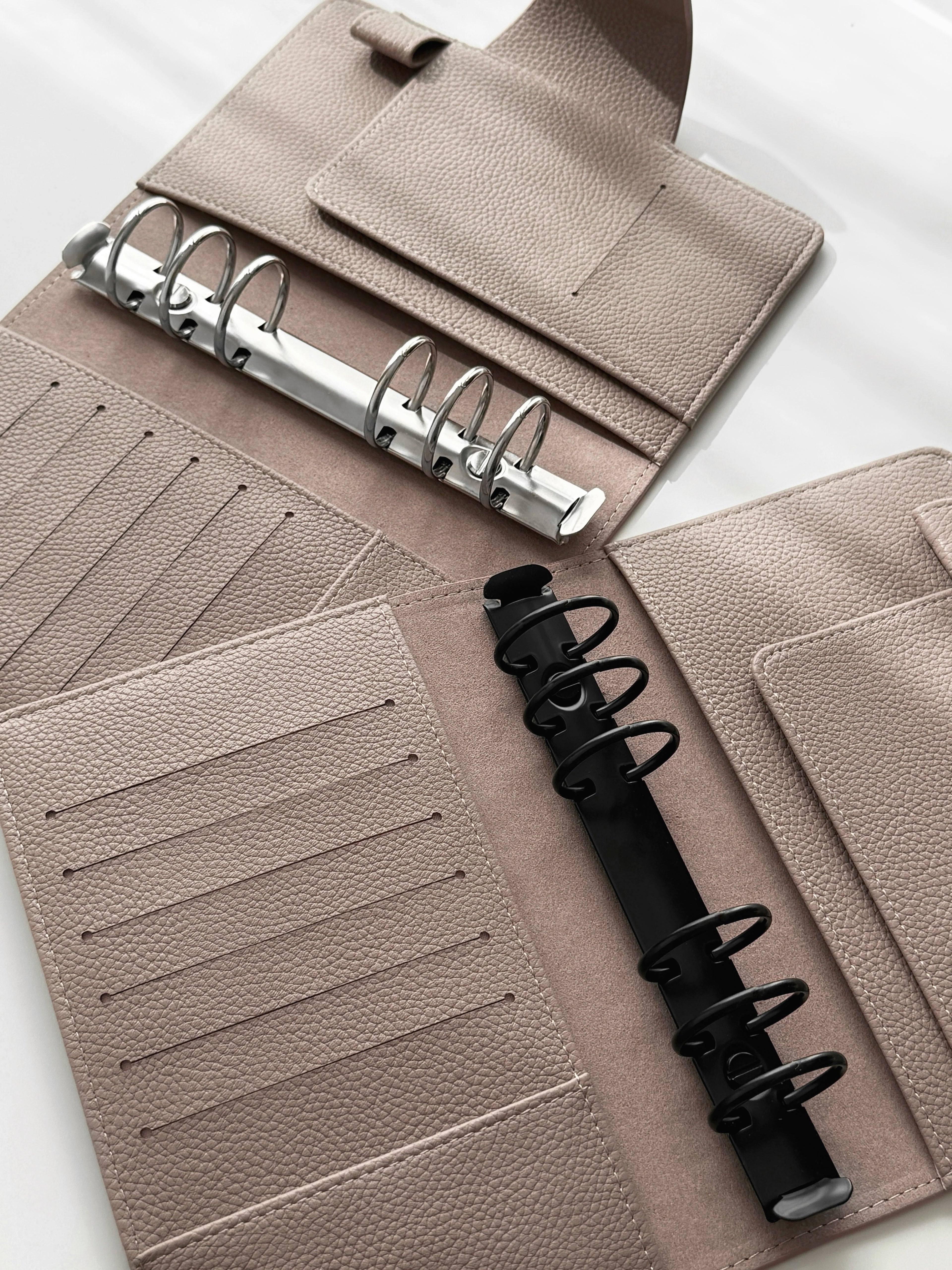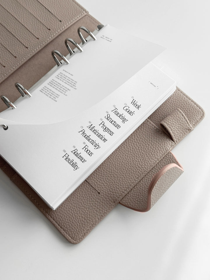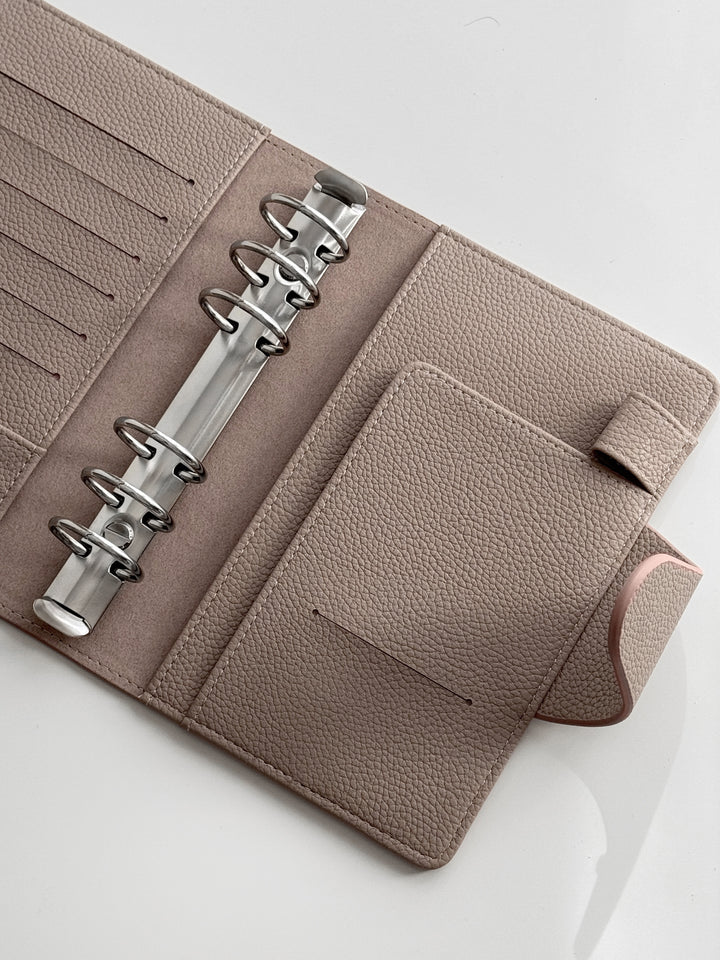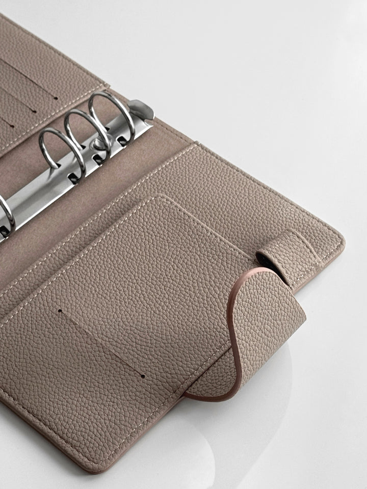 Entdecken Sie unseren exquisiten Binder in Personal-Größe aus hochwertigem veganem Leder in der Farbe «Taupe Clair», dass aus einer eleganten Litchi-/Pebbled Oberflächenstruktur besteht. Dieser Binder ist die ideale Ergänzung für Ihre individuelle Organisation und verleiht Ihnen ein Hauch von Luxus.
