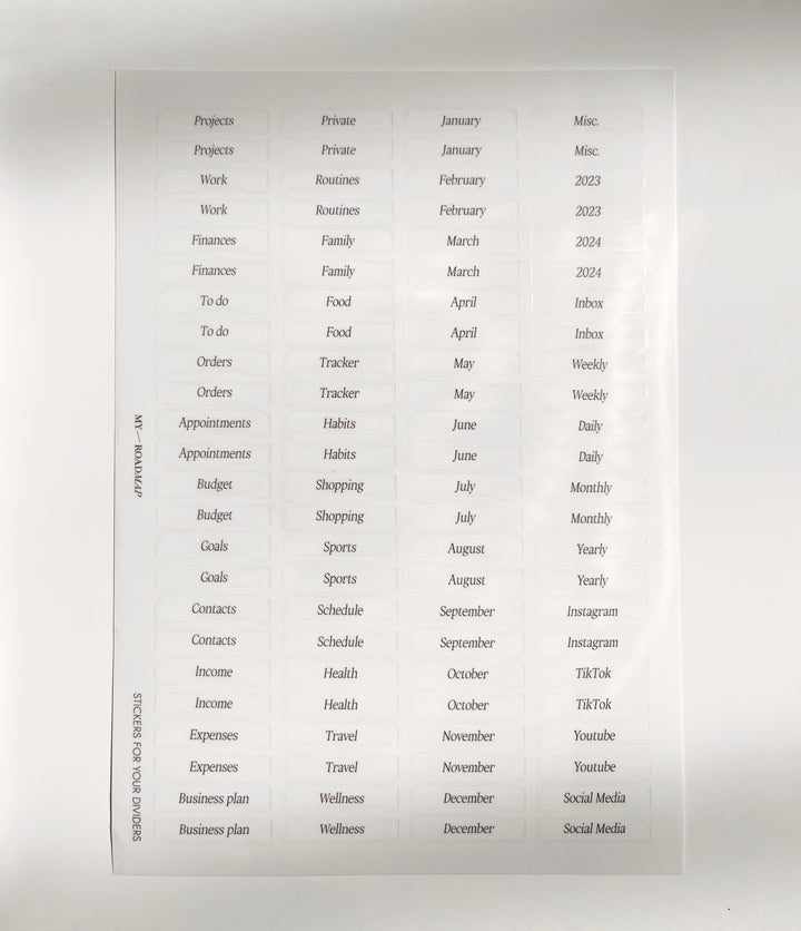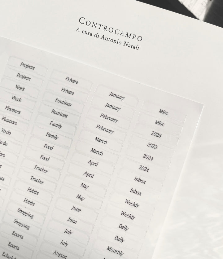 Transparente Tab Stickers für Trennblätter/Lesezeichen (schwarz Print)