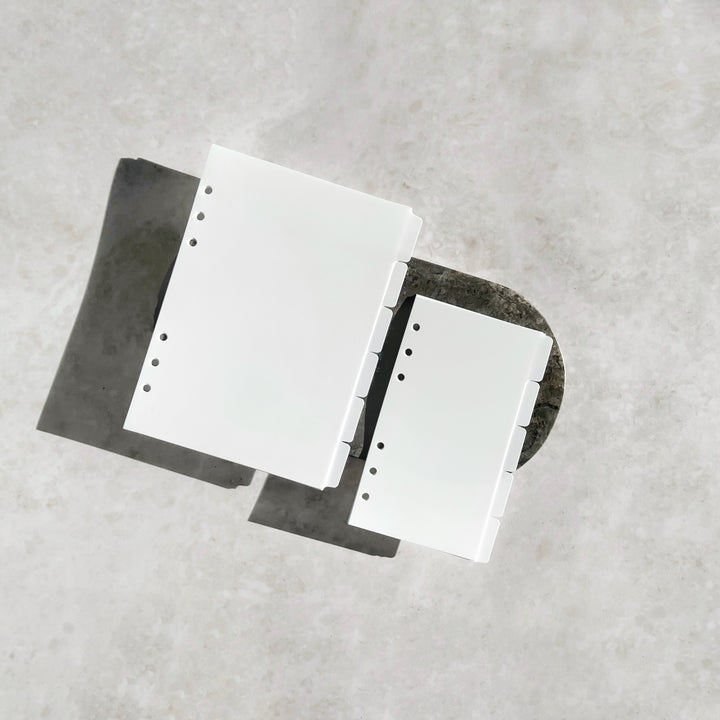 Diese Trennblätter in der Größe A5 und Personal bringen schick und unauffällig Ordnung in deinen Planer! Sie sind aus hochwertigem Material gefertigt, das für eine lange Lebensdauer sorgt und robust genug ist, um den täglichen Gebrauch zu überstehen.
