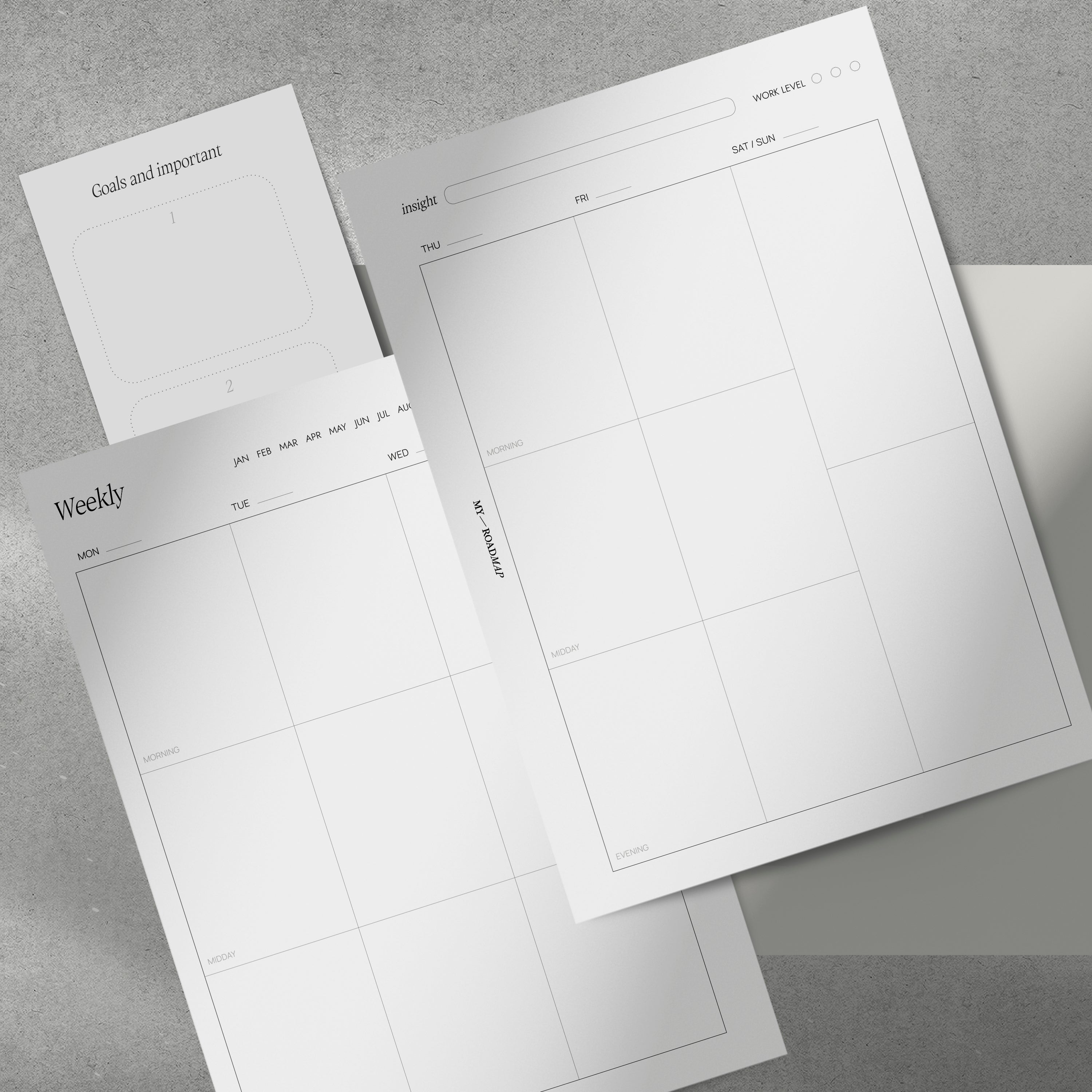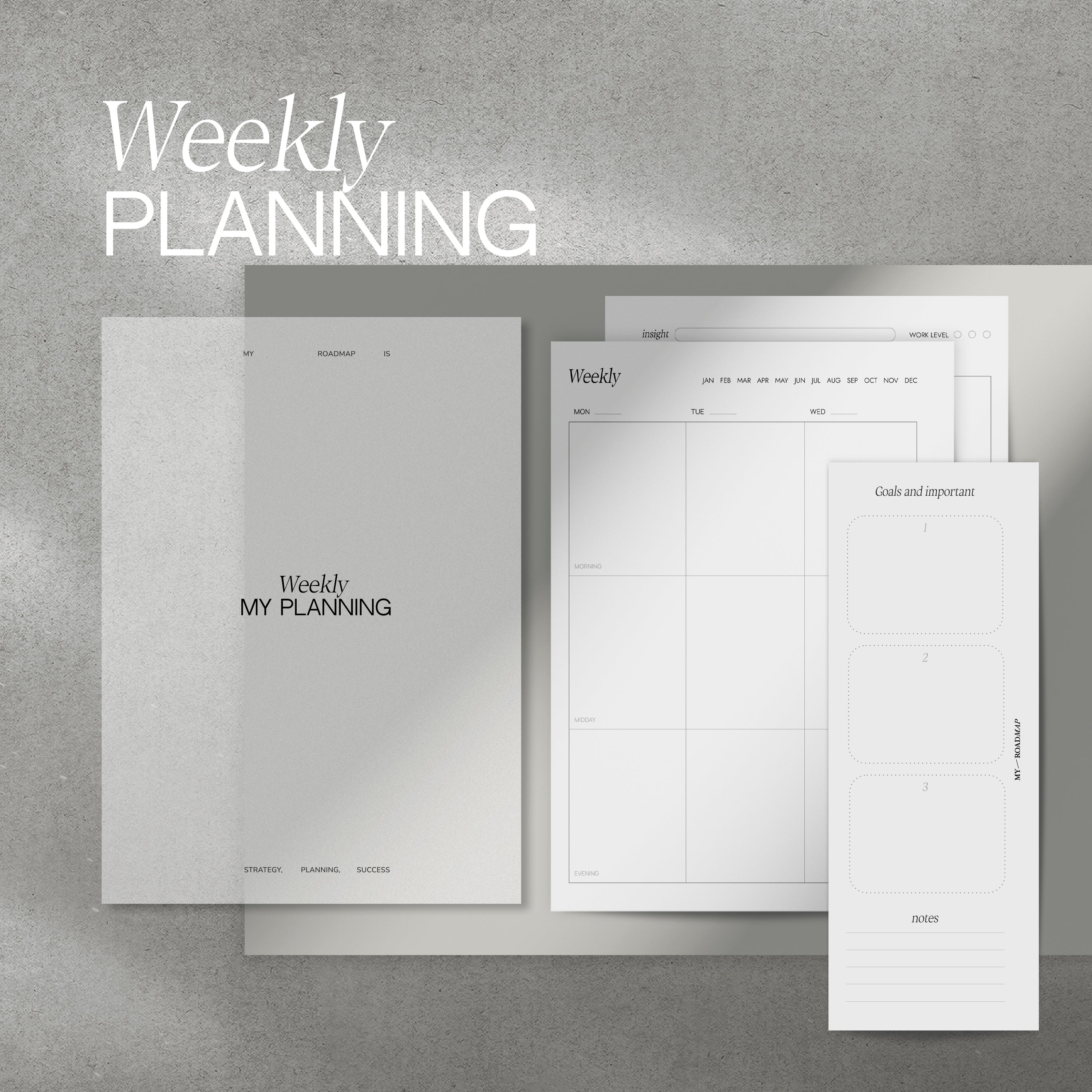 ▷ Menge: 30 - 90 Seiten Wochenplaner, 2 Seiten = 1 Woche + Zwischeneinlagen (eine Einlage für jede Woche) + Vellum Transparentpapier Dashboard (115g/qm)