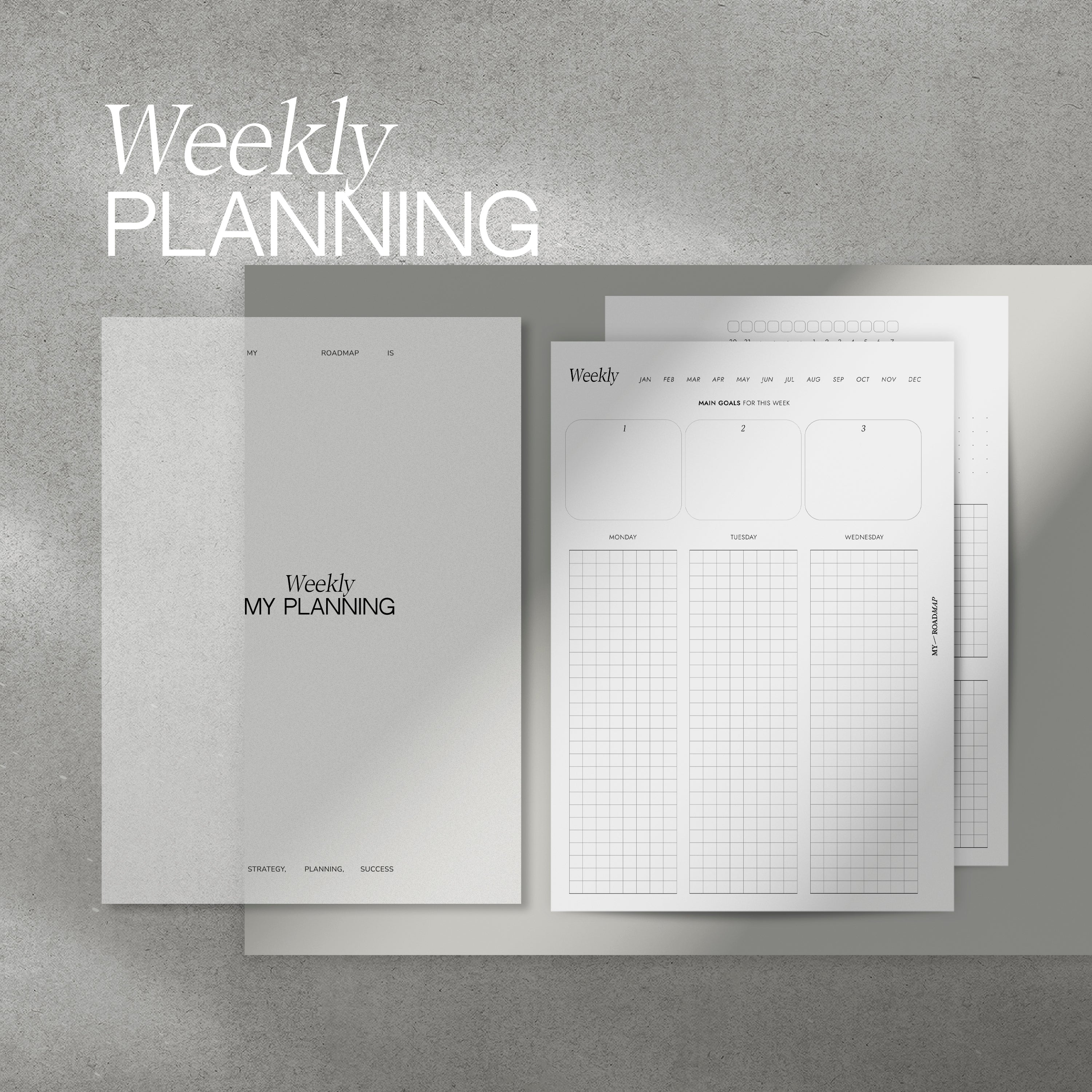 ▷ Menge: 30 - 90 Seiten Wochenplaner, 2 Seiten = 1 Woche + Vellum Transparentpapier Dashboard (160g/qm)